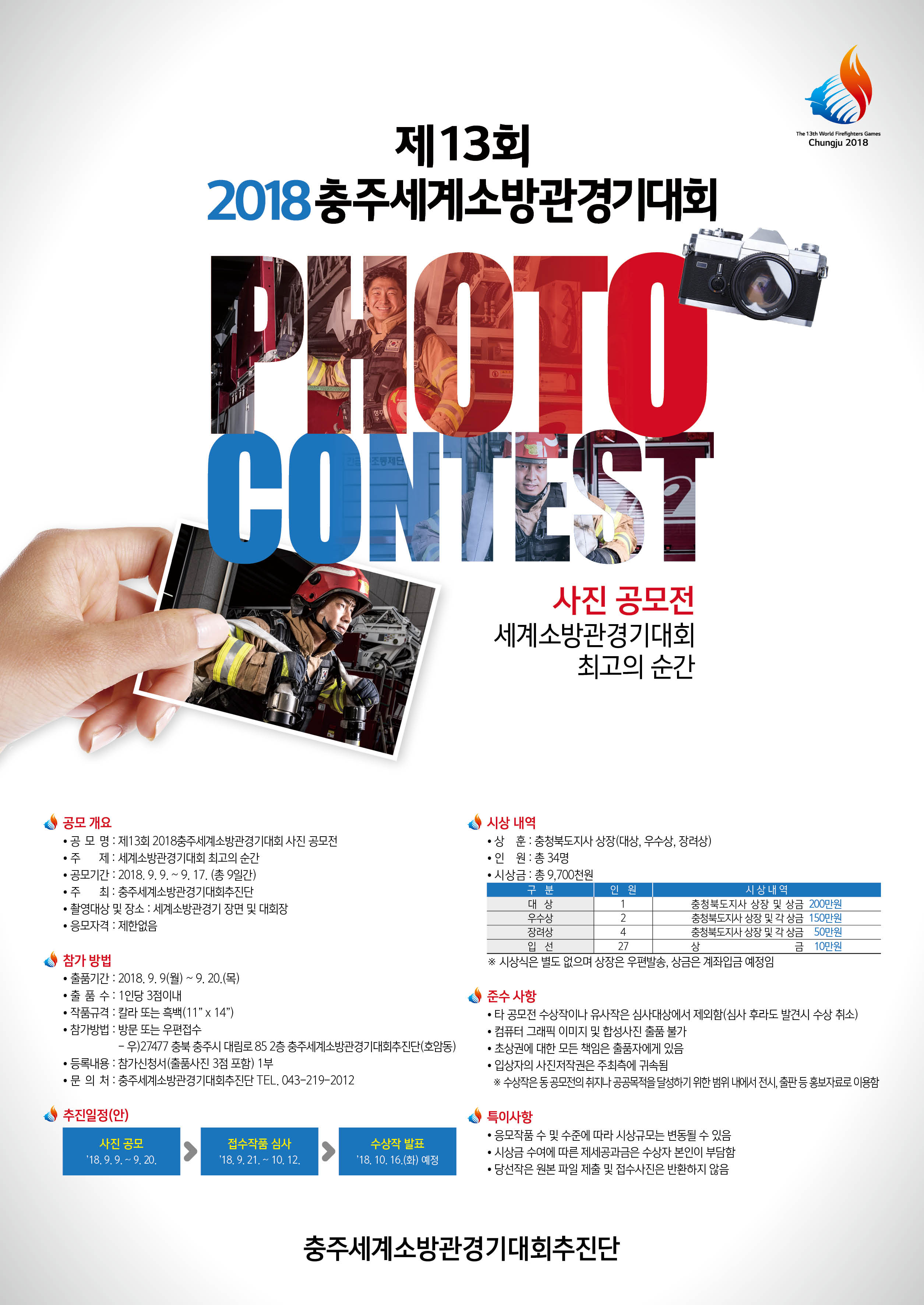 ○ 공 모 명 : 제13회 2018충주세계소방관경기대회 사진 공모전