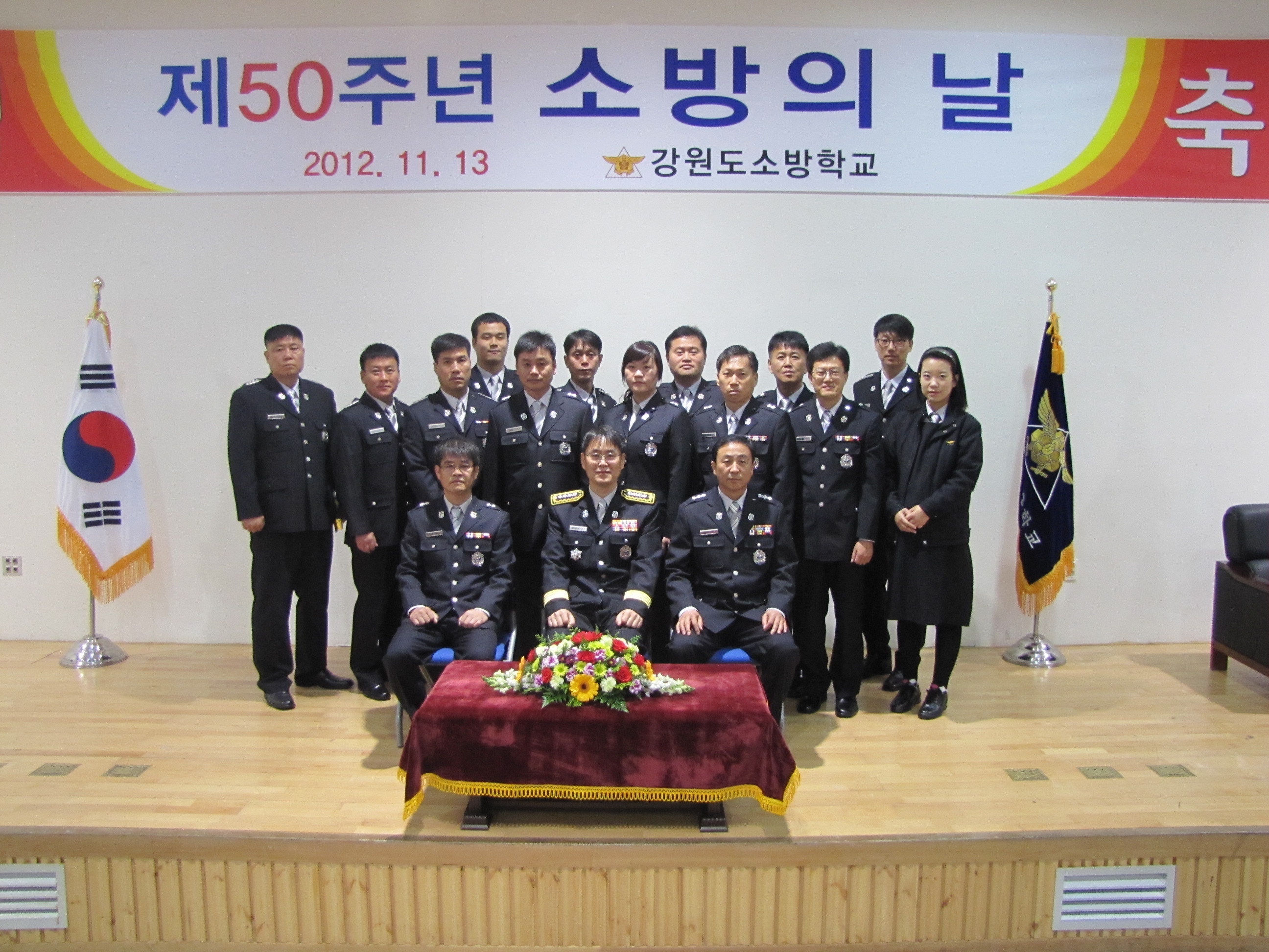 강원도소방학교(학교장 정병도)는 11월 13일 오전 10시 소방학교 대강의실에서 교직원 및 교육생 80여명이 참석한 가운데 화기애애한 분위기속에서 "제50주년 소방의 날" 기념행사를 실시했다.