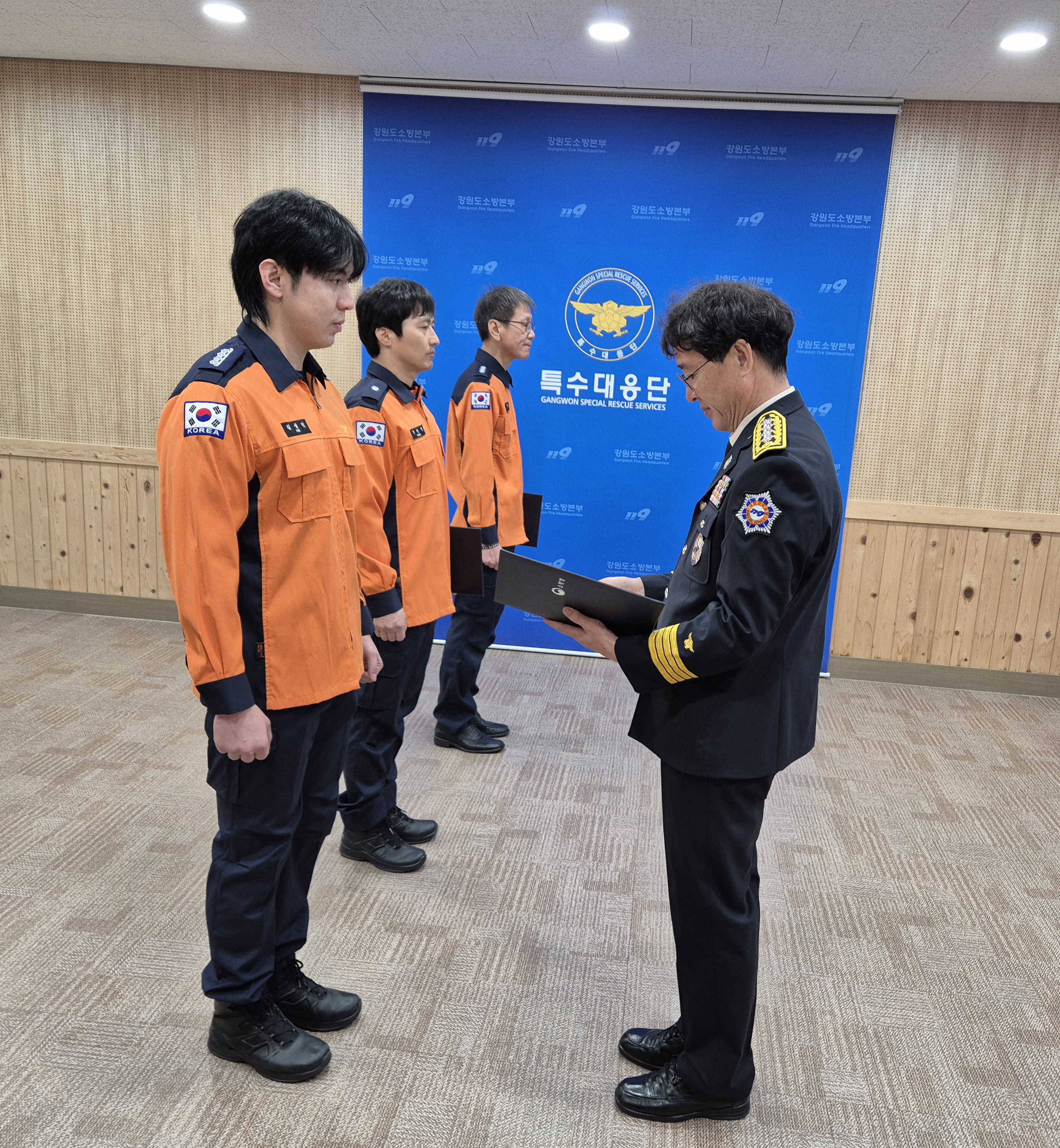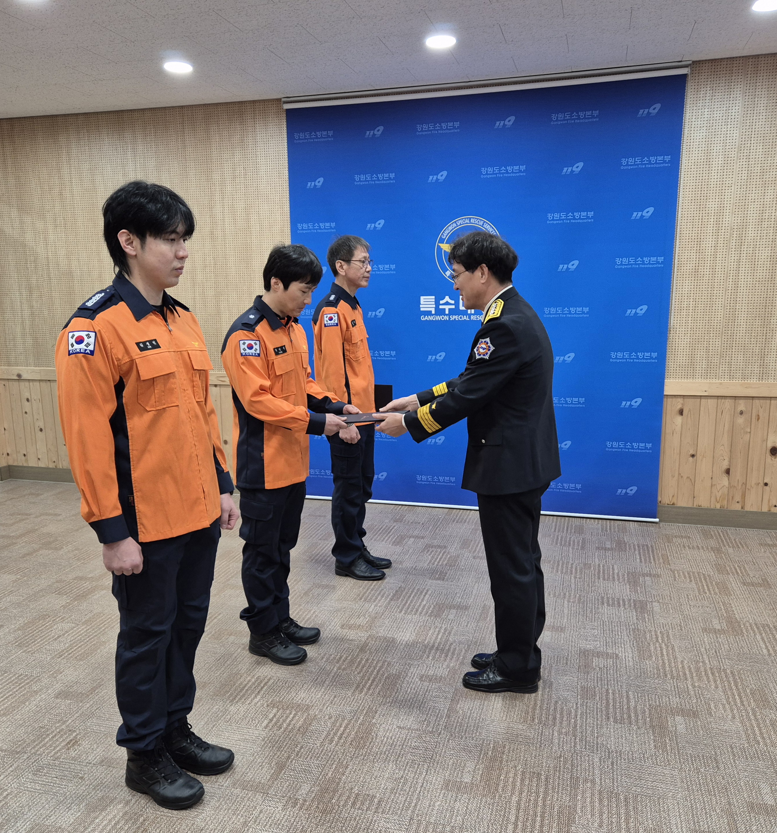 특수대응단(단장 안종록)은 2025년 1월 6일 10시 2024년 소방항공안전 유공자 표창장 수여식을 실시하였습니다.