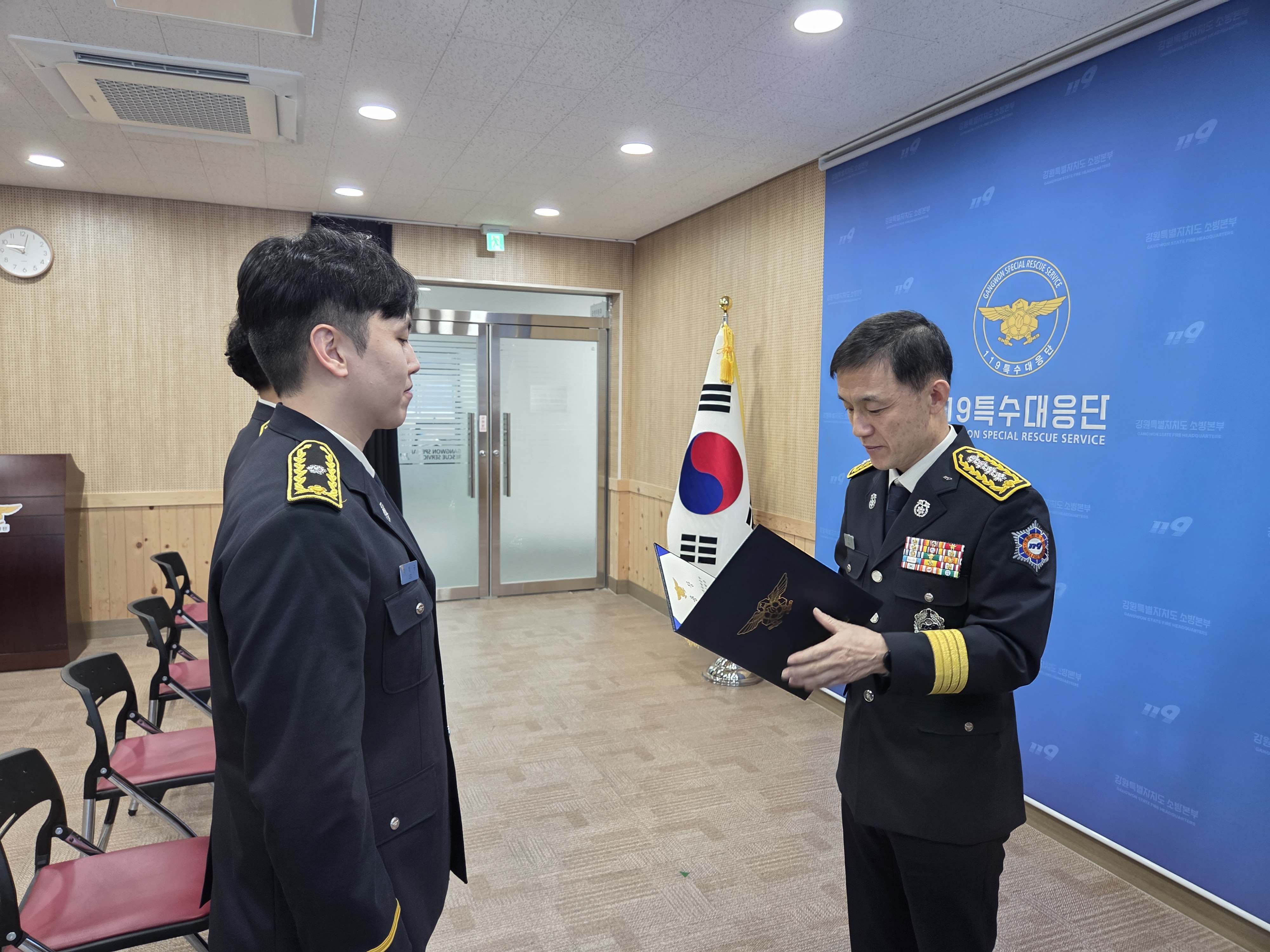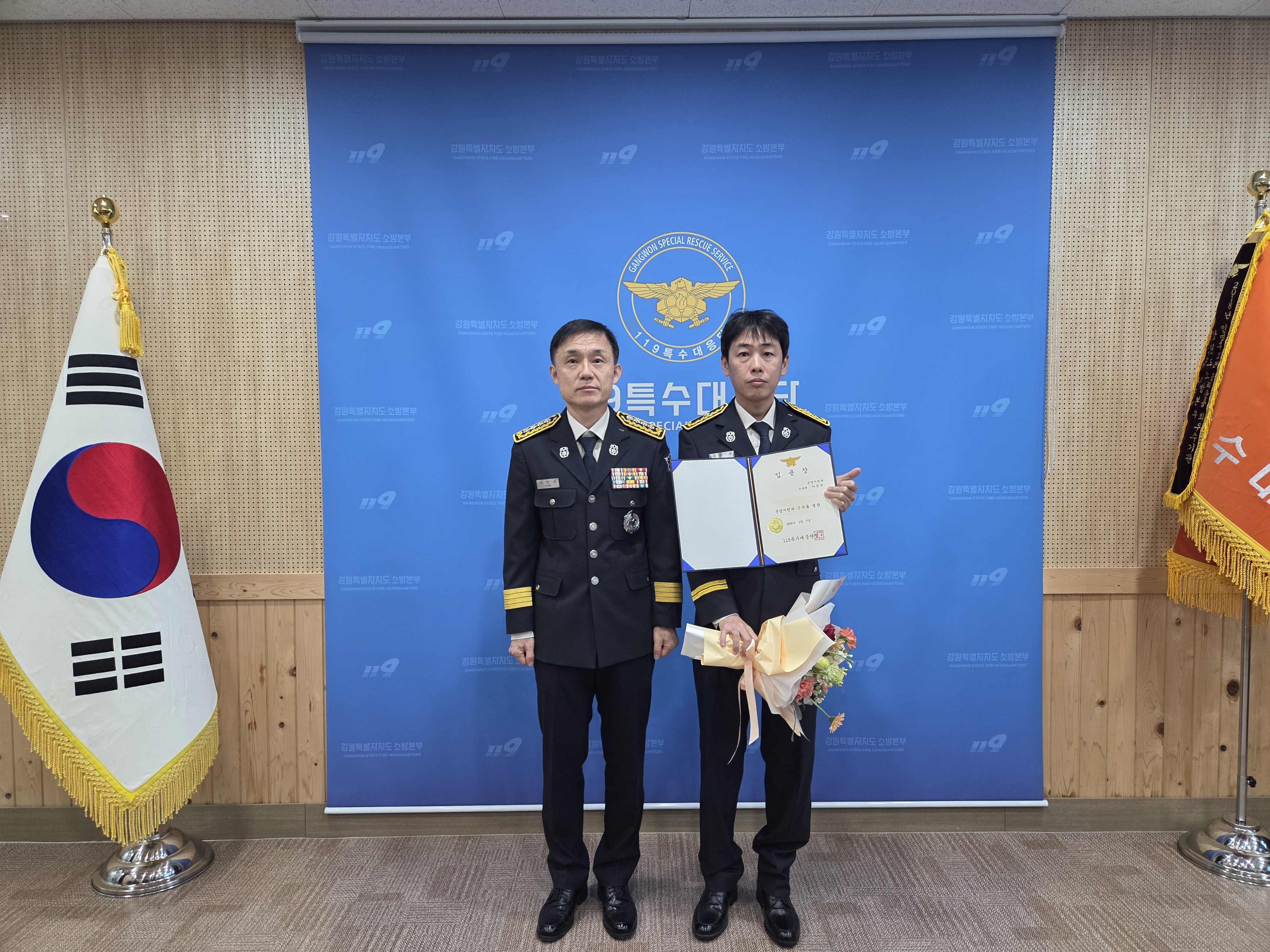 인사발령으로는 승진자(소방위 이정국), 전입자 8명(경 황정기 외 7명)으로 119특수대응단 각 부서에 배치되었습니다.