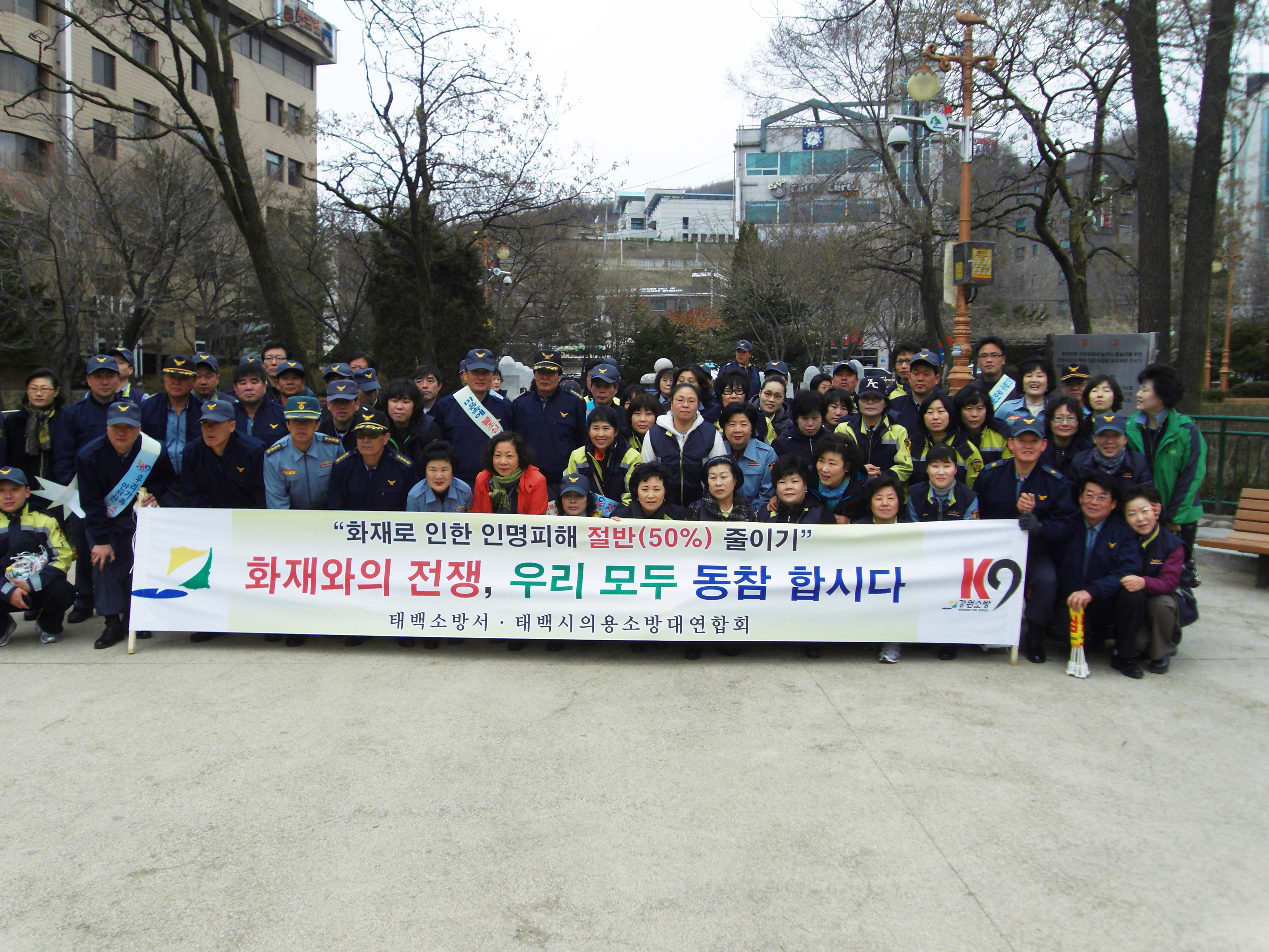 황지연못 에서 산불과의 전쟁선포 및 산불조심 안내장 배포