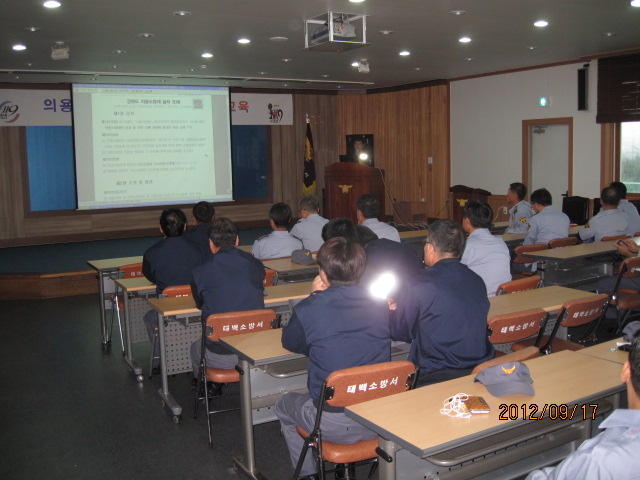 지난 17일 의용소방대 9월 정규교육이 소방서 3층 강의실에서 남성대 전원이 참석한 가운데 과장님의 교육에 이에 담당계장님의 교육과 심폐소생술의 교육으로 이어저 보다 더 효율적인 교육이었다고 입을 모았다 .