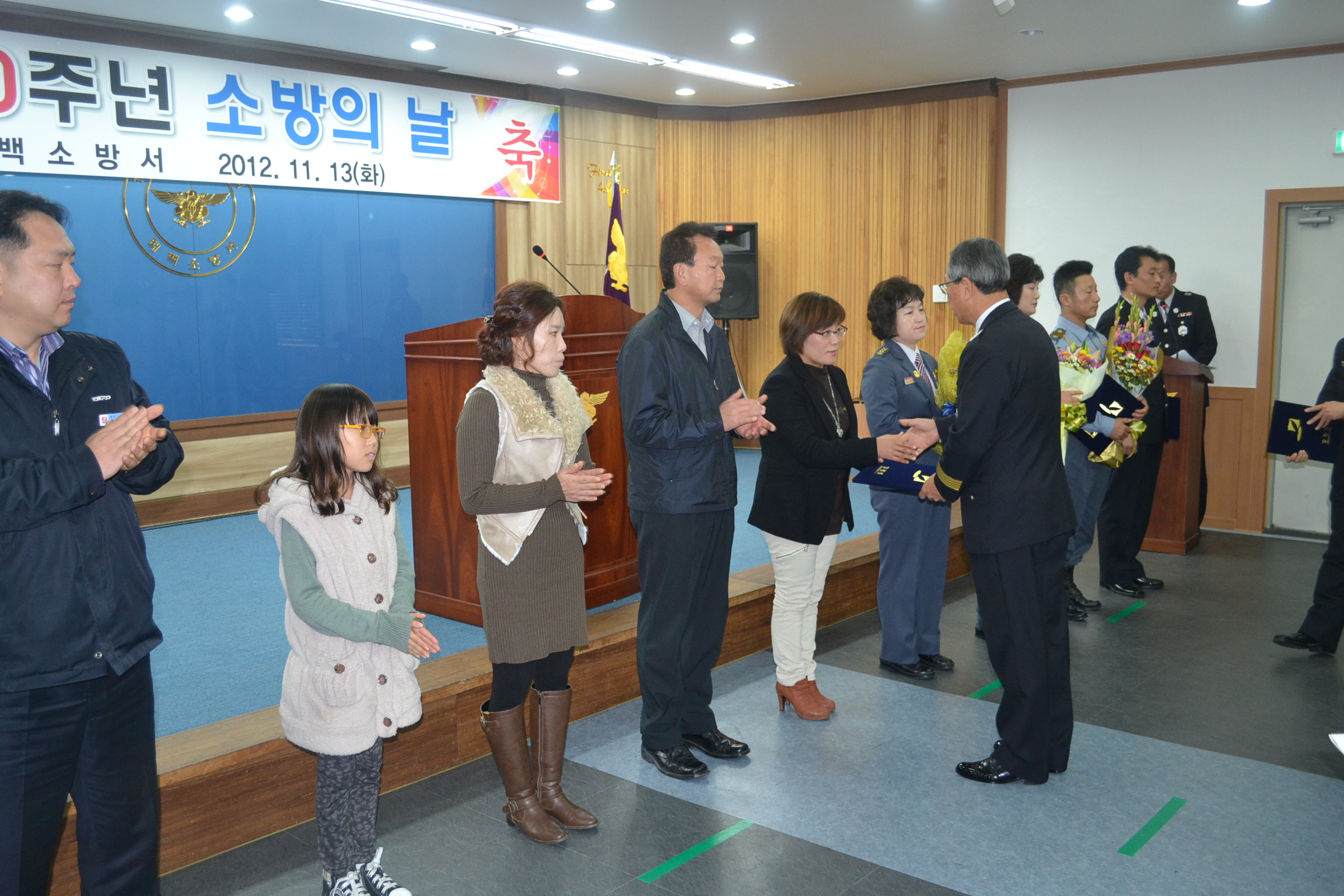 태백소방서(서장 김진봉)는 "제 50주년 소방의 날"을 맞아 소방서 대회의실에서 소방공무원과 의용소방대원, 김진만 태백시부시장, 손석암 도의원,고재창 시의회의장,의용소방대장 등 145명이 참석한 가운데 기념식을 가졌다.