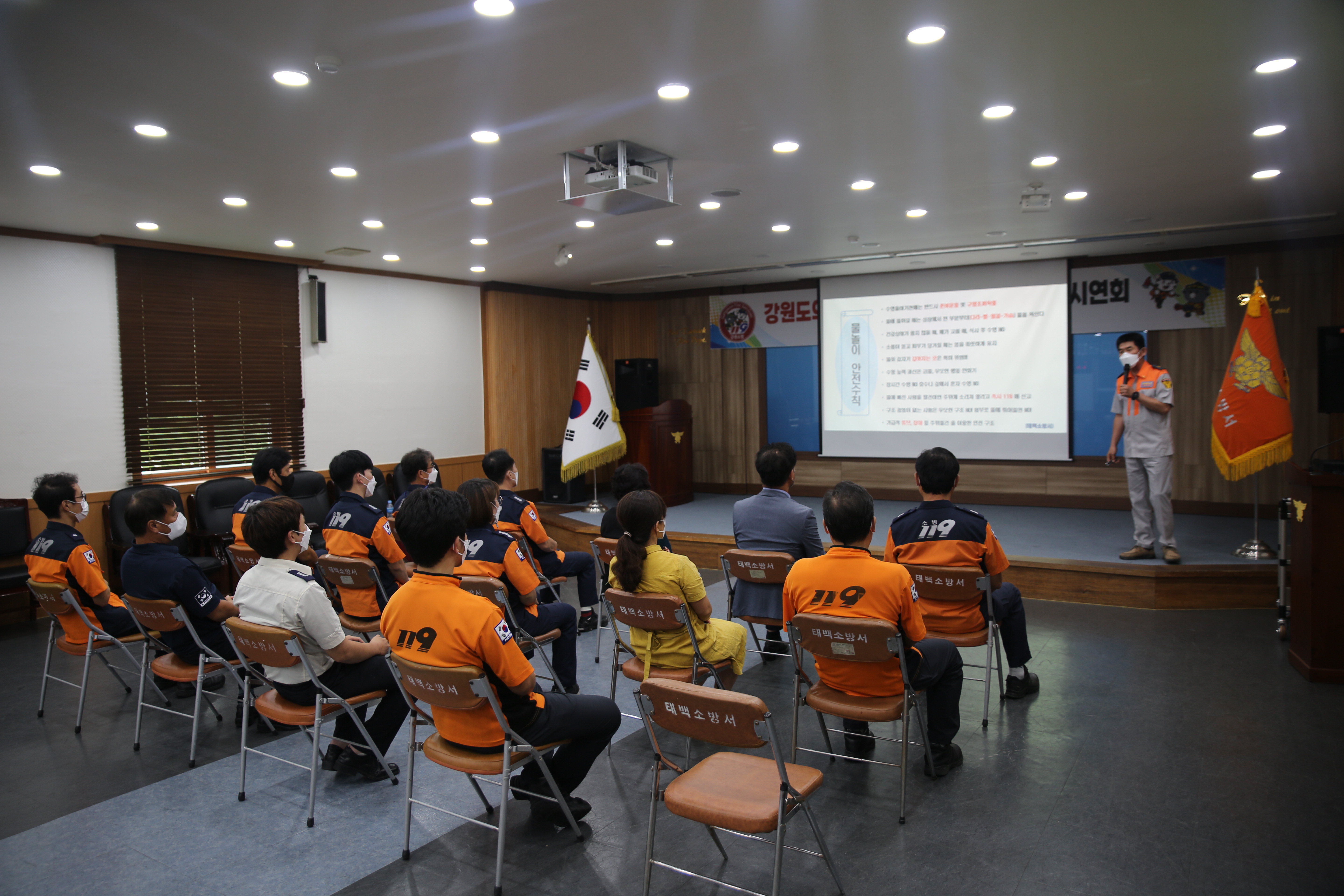 태백소방서(서장 김재석)는 지난 1일 본서 대회의실에서 제7회 의용소방대 강사 강의 경연대회 대비 시연회를 개최했다고 밝혔다