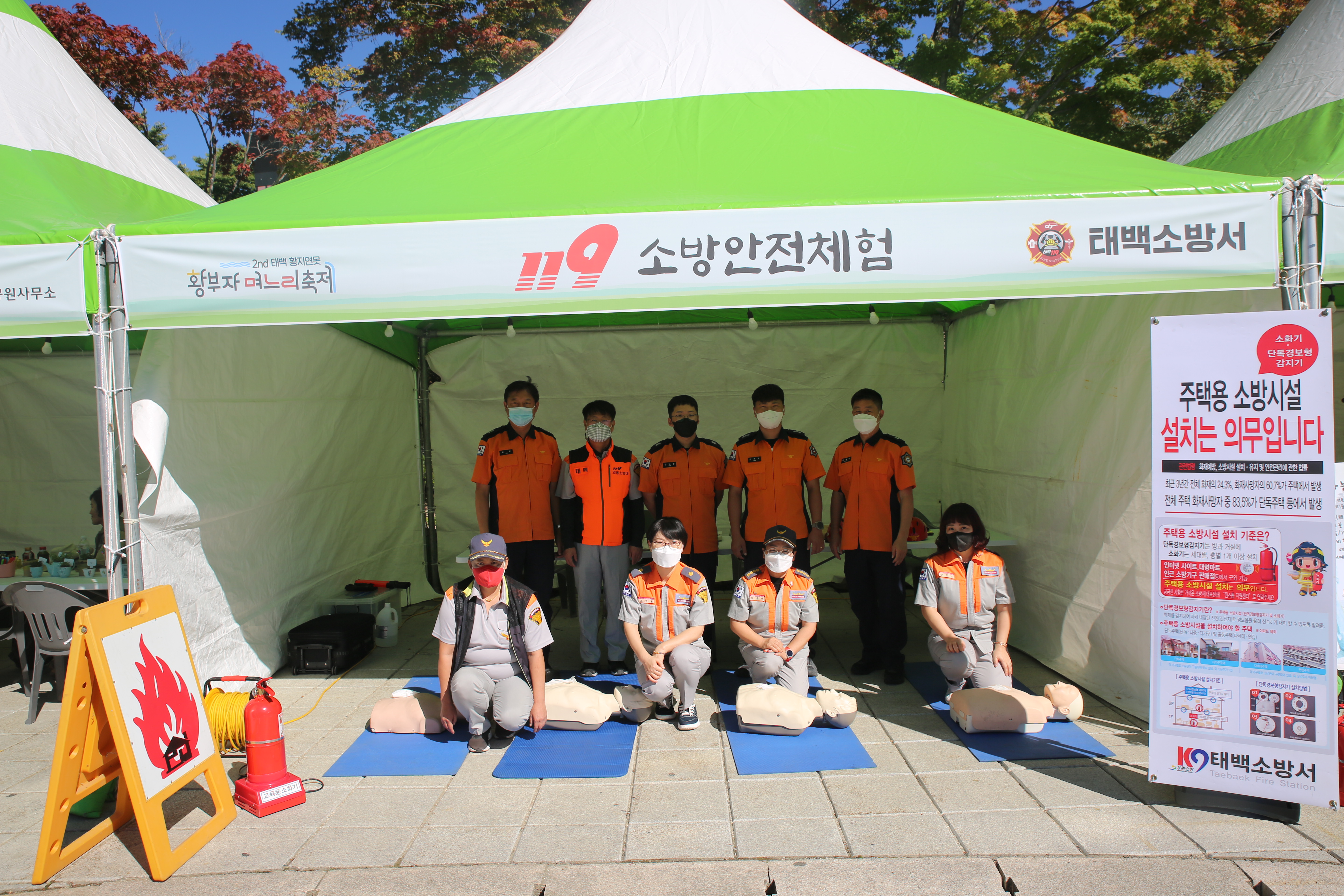 이번 소방안전체험장은 축제 기간에 맞춰 태백시민과 관광객을 대상으로 안전문화를 조성ㆍ홍보하고자 마련됐다. 소방공무원, 의용소방대원 등 13여 명이 동원됐다.