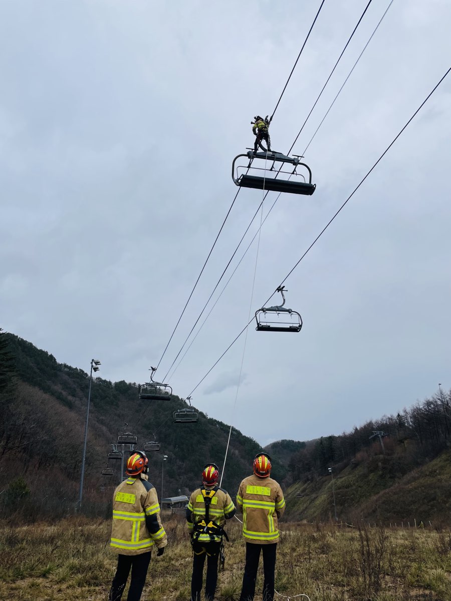 주요 훈련 내용은 ▲리프트 안전사고 발생에 대비한 인명구조 방법 숙달 훈련 ▲리프트 케이블을 활용한 로프 등반ㆍ하강 ▲구조대원과 스키장 관계자 간 공조체계 구축 등이다.