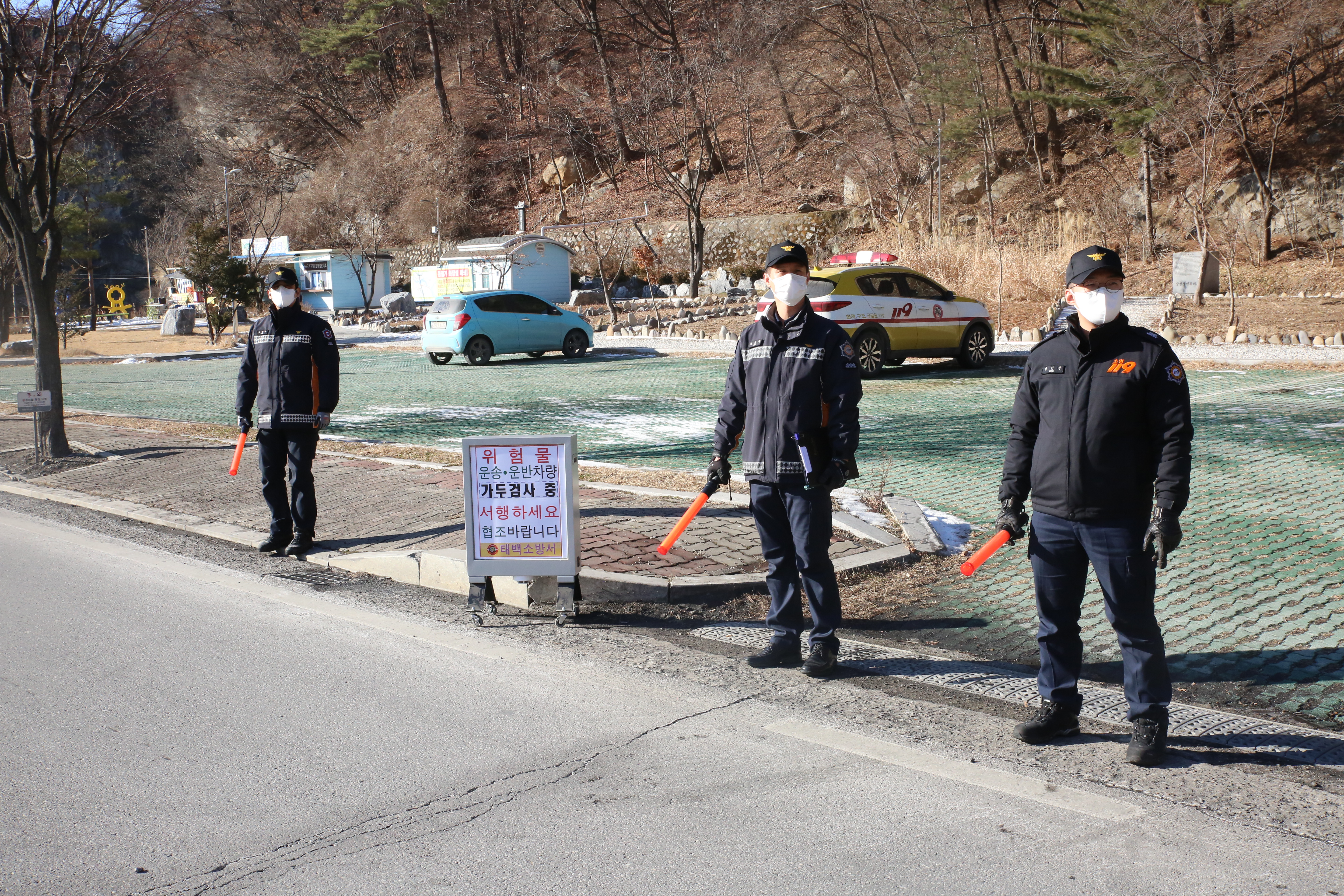 강원도 태백소방서는 28일 구문소동, 통리 인근 이동탱크저장소와 지정수량 이상 위험물 적재 운반차량에 대해 가두검사를 실시했다.
