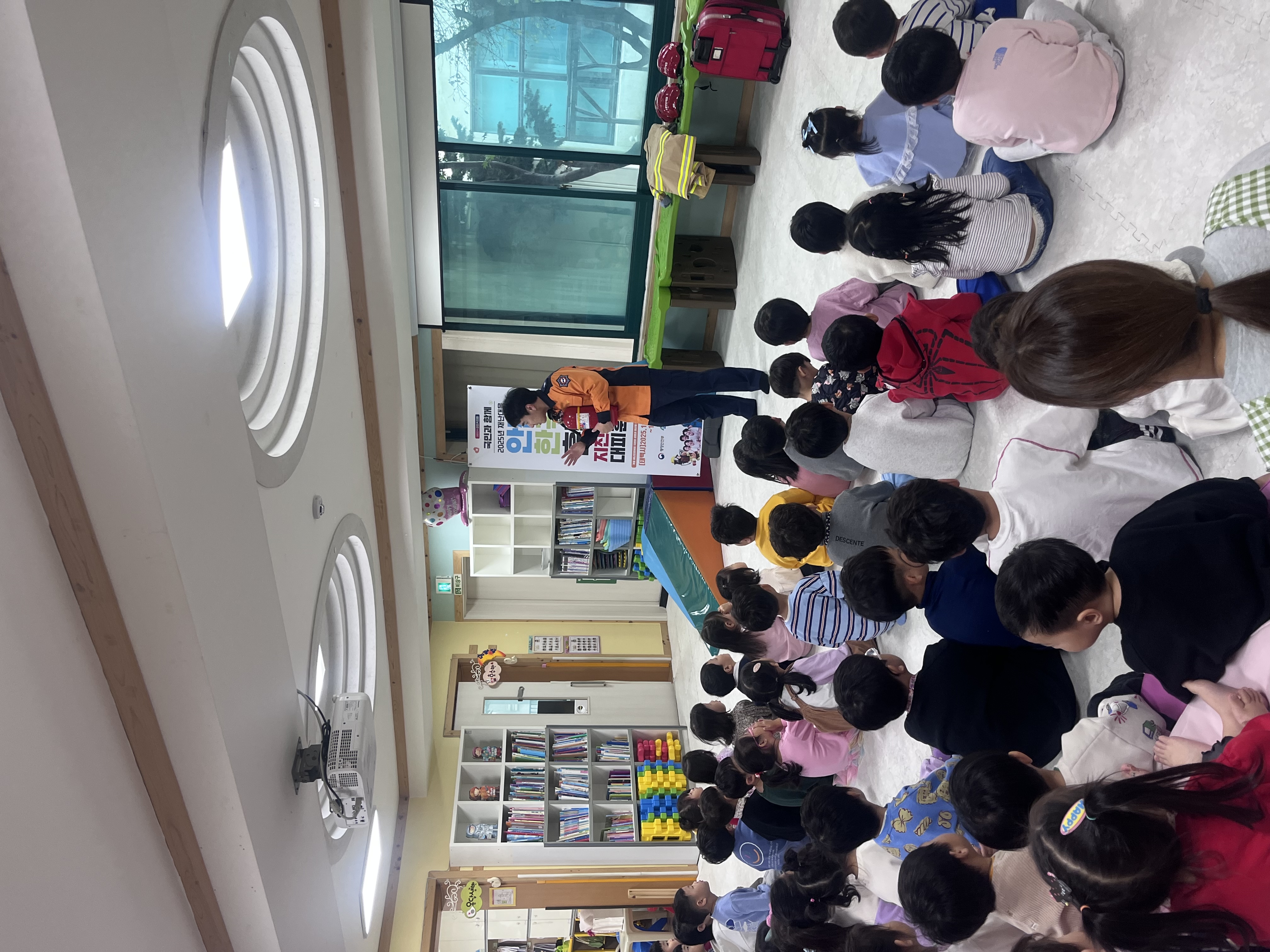 어린이들에게 화재 발생 시 침착하게 대피하는 방법을 가르치고, 소화기 사용하는 방법도 함께 익혔습니다.