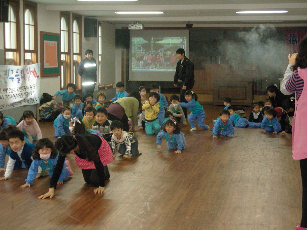 태백소방서(서장 정승진)는 11월 16일(월) 오전 늘봄어린이집을 방문하여 소방안전 체험교육을 실시했습니다. 월1회 선생님들과 대피훈련을 해왔다는 어린이들(3세부터 7세)은 연기발생기에서 나오는 연기와 사이렌소리에 맞춰 자세를 낮추고 신속하게 대피하여 체험이 최고의 교육임을 보여주었습니다.
