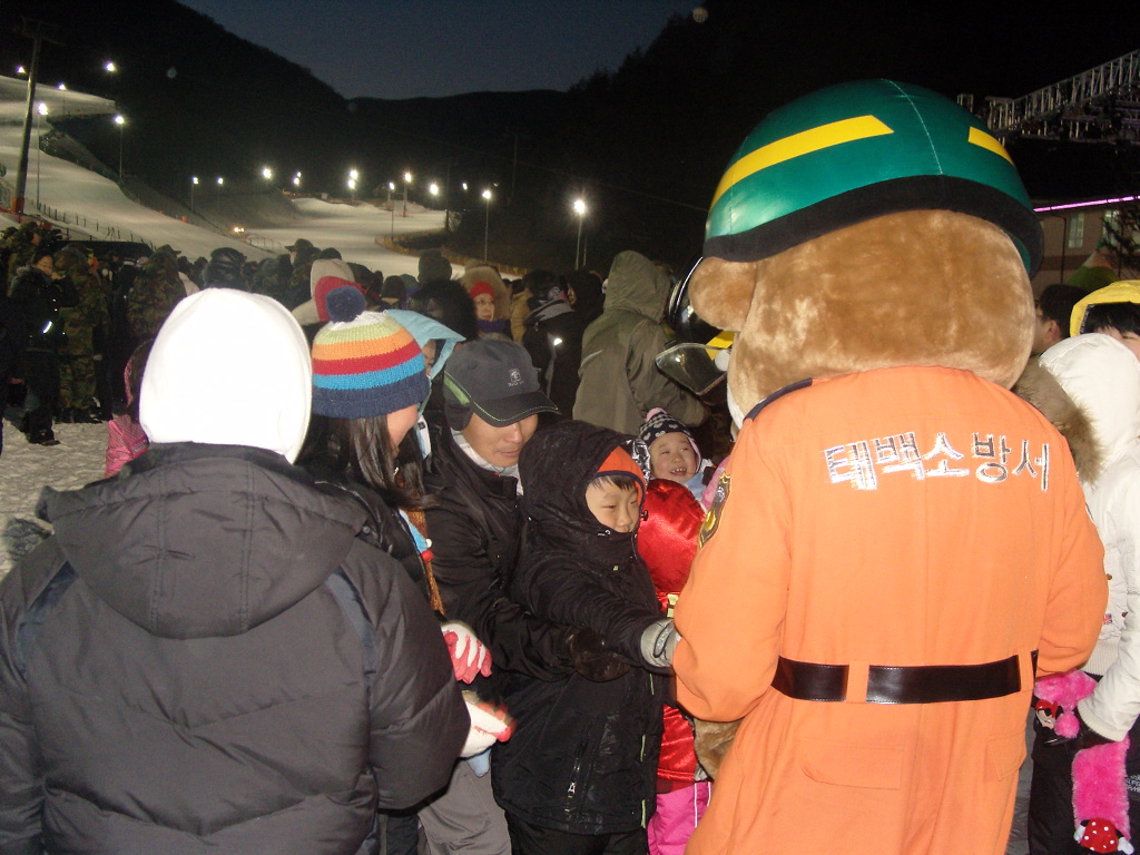 태백소방서(서장 정승진)는 1월 22일(금) 밤 오투리조트에서 열린 <2010 도전! 5천명의 눈싸움>에 참가했다. 시민들 및 관광객들을 대상으로 축제 분위기를 돋우고 소방홍보 활동도 하여 호응을 얻었다.