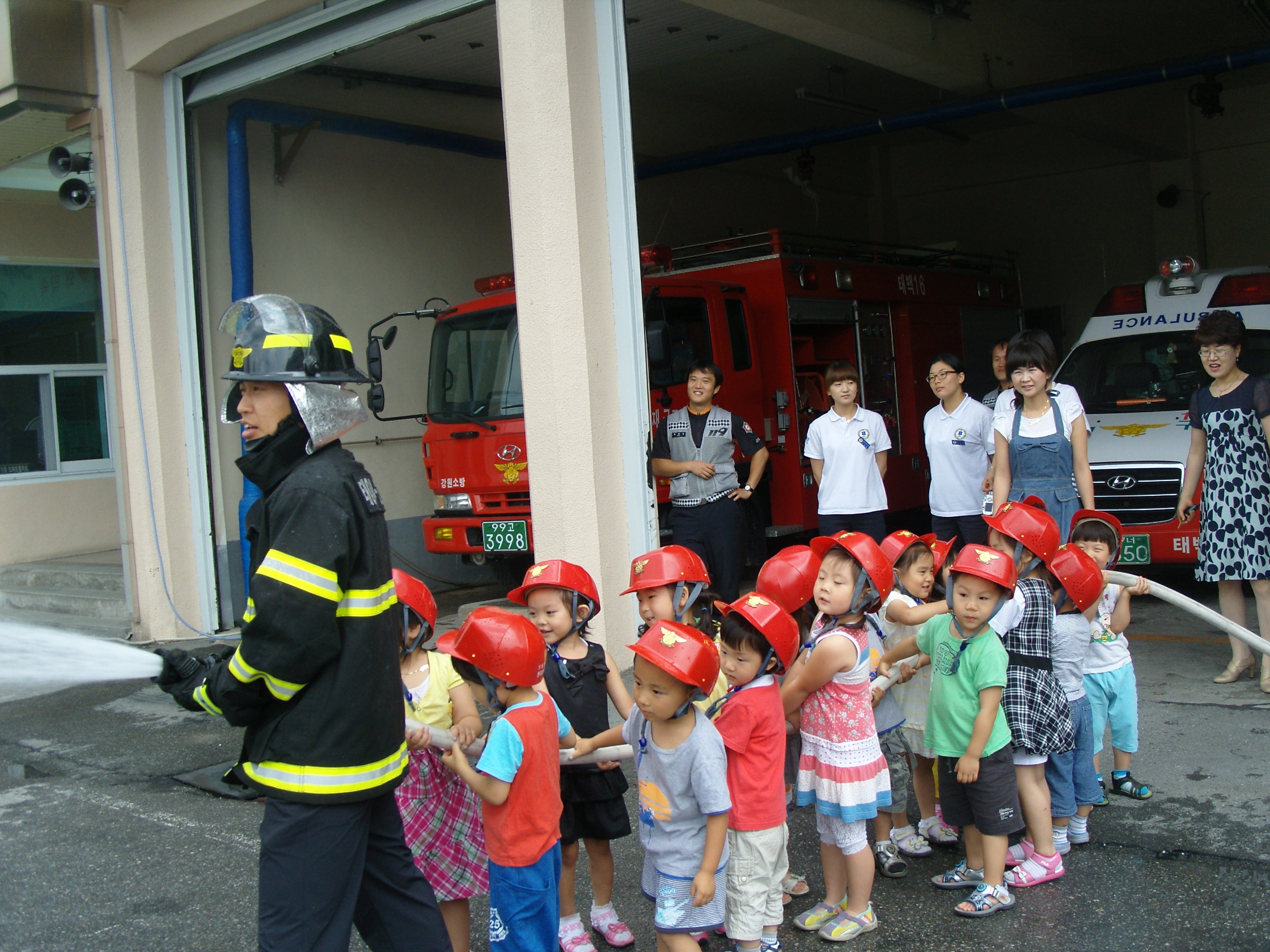 철암어린이집 어린이들이 7월 9일(금) 오전 태백소방서를 방문하여 견학 및 소방안전 체험교육 기회를 가졌다.