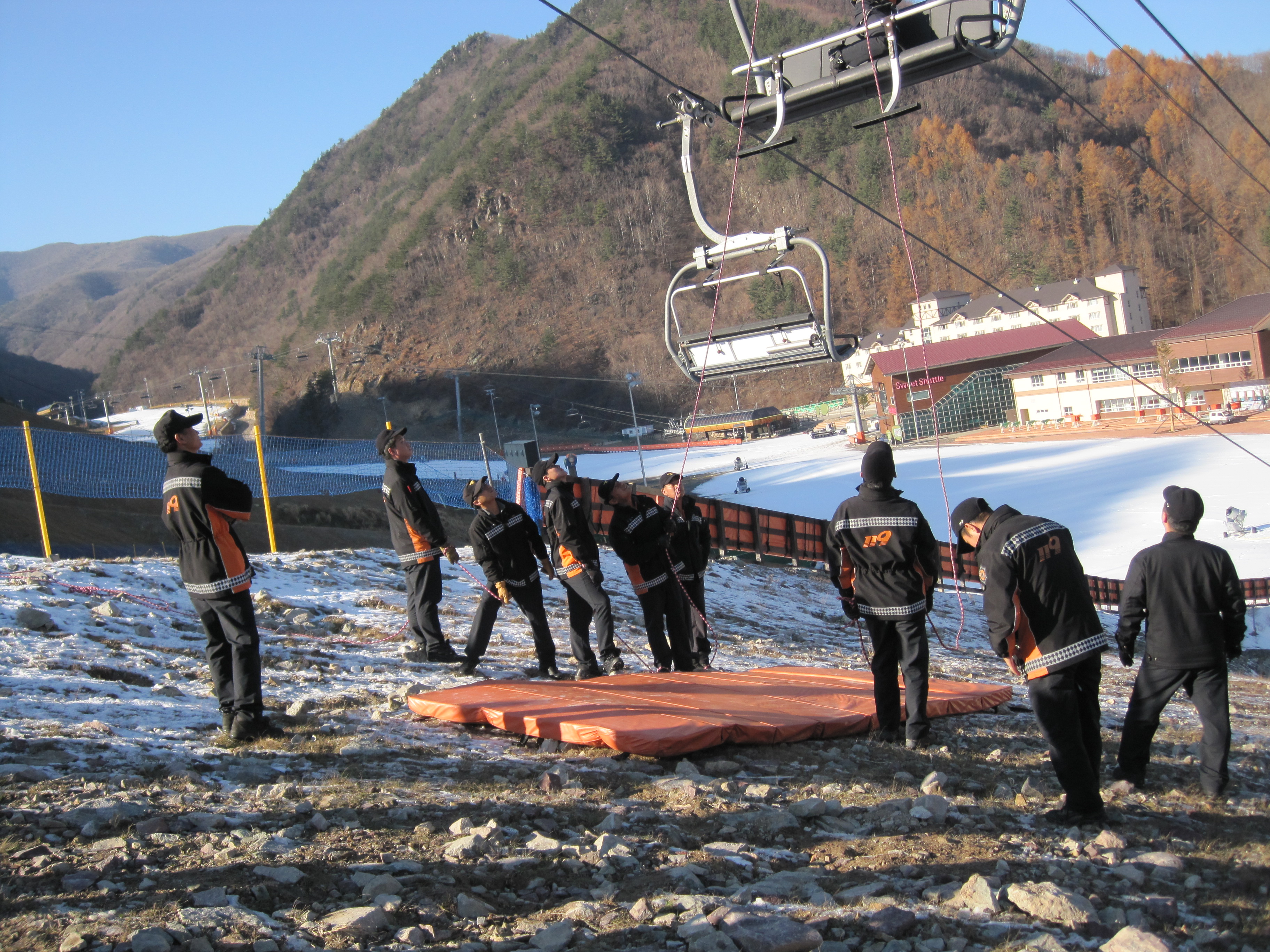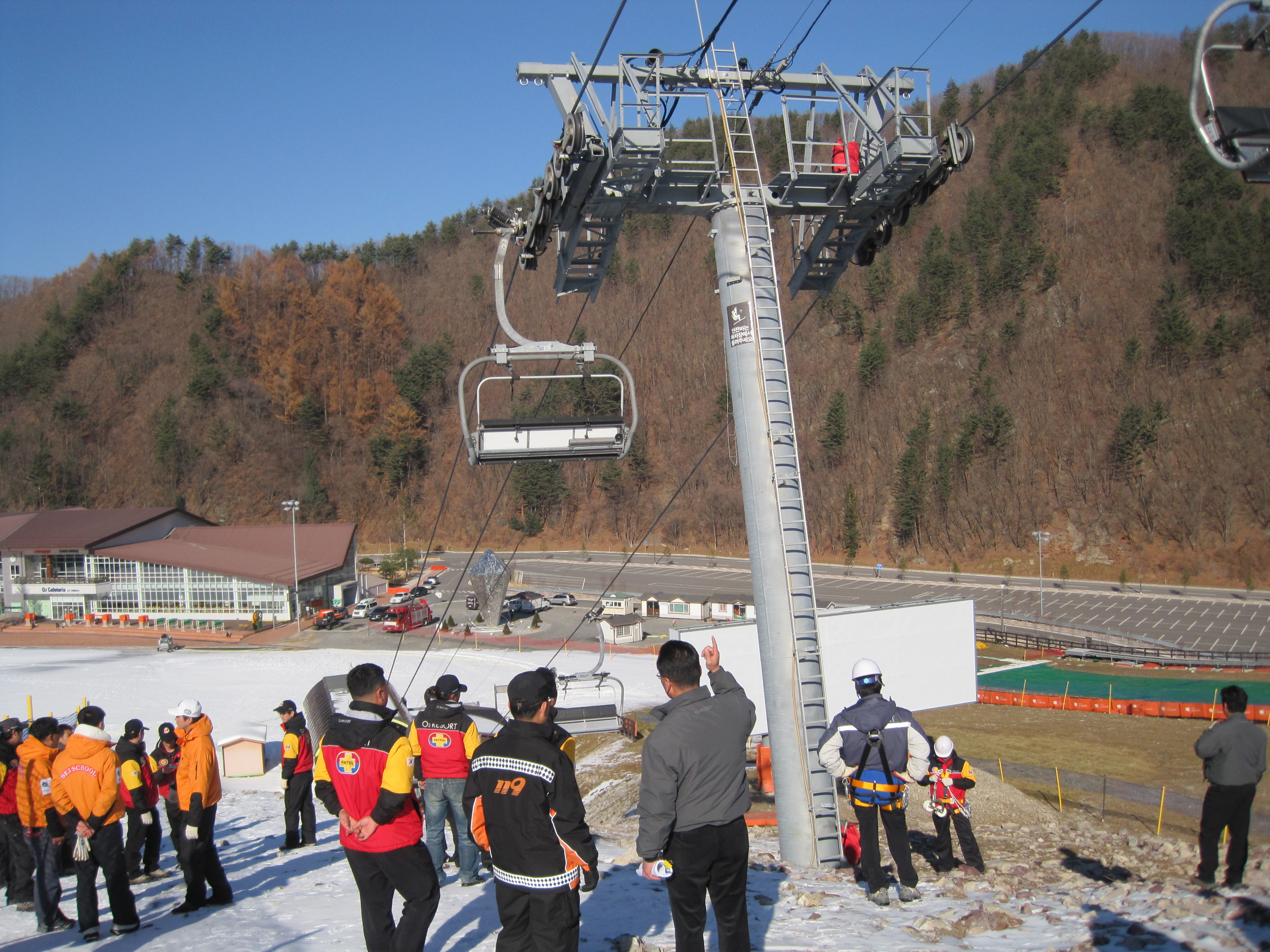 태백소방서(서장 여윤길)는 11월 18일(목) 오후14시 오투리조트 스키하우스에서 오투리조트 관계자외 인명구조대원 30여명이 소방관계자 3명외 119구조대원 12명이 참석한 가운데 25일(목)개정을 일주일앞둔 시점에서 리프트 안전점검및 인명대비구조훈련을 실시함.