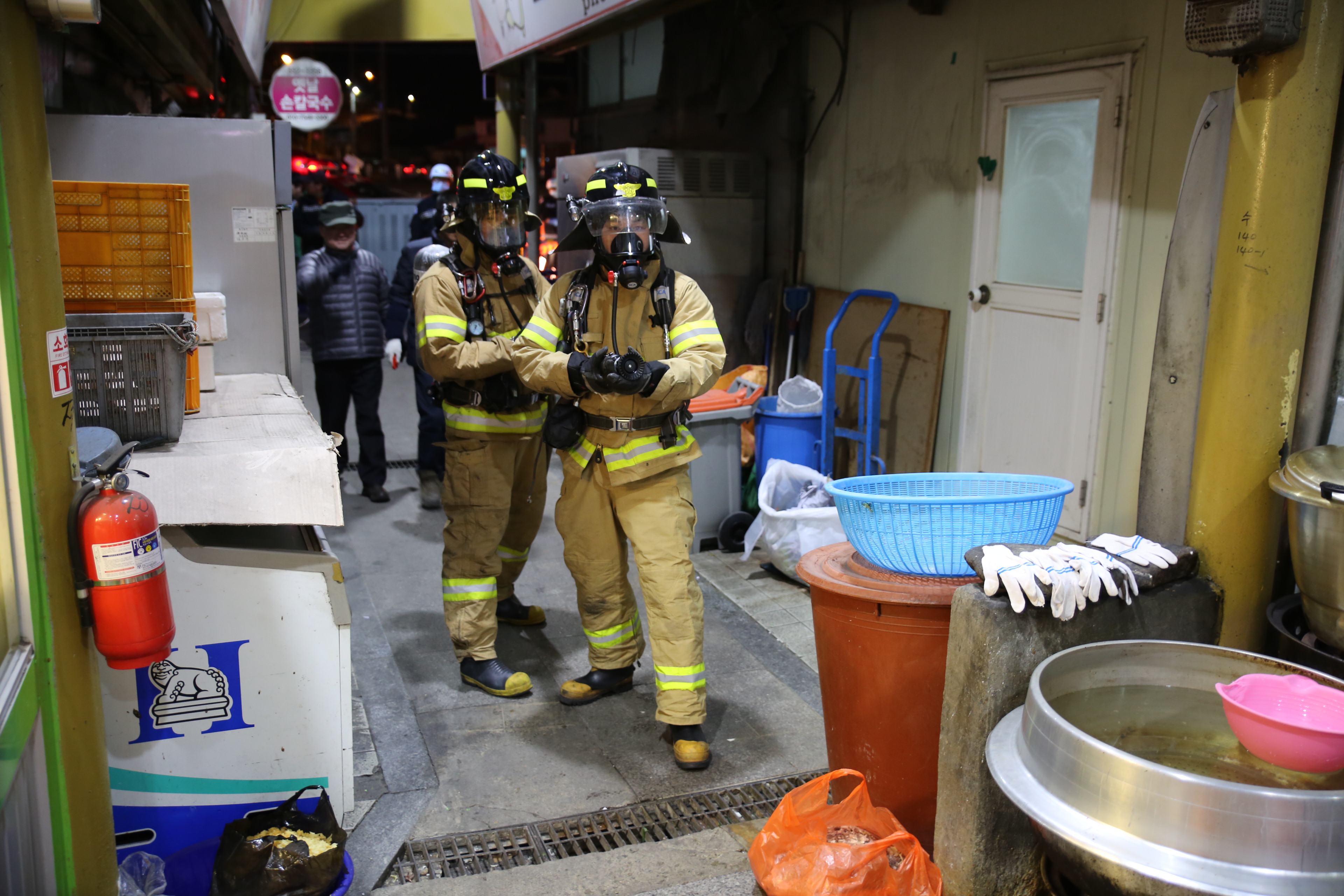 황지자유시장 야간 화재진압훈련 실시