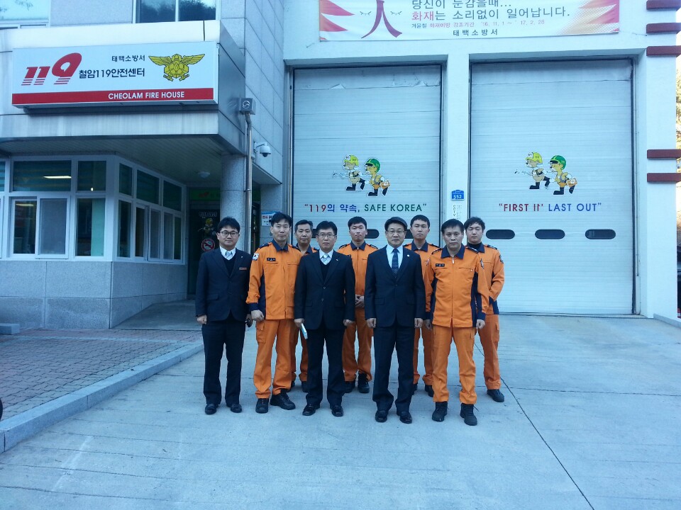 강원소방본부장(이흥교)은 2017년 2월 2일(목) 15시 25분경 태백시 철암동 소재 철암119안전센터를 격려 방문했다.