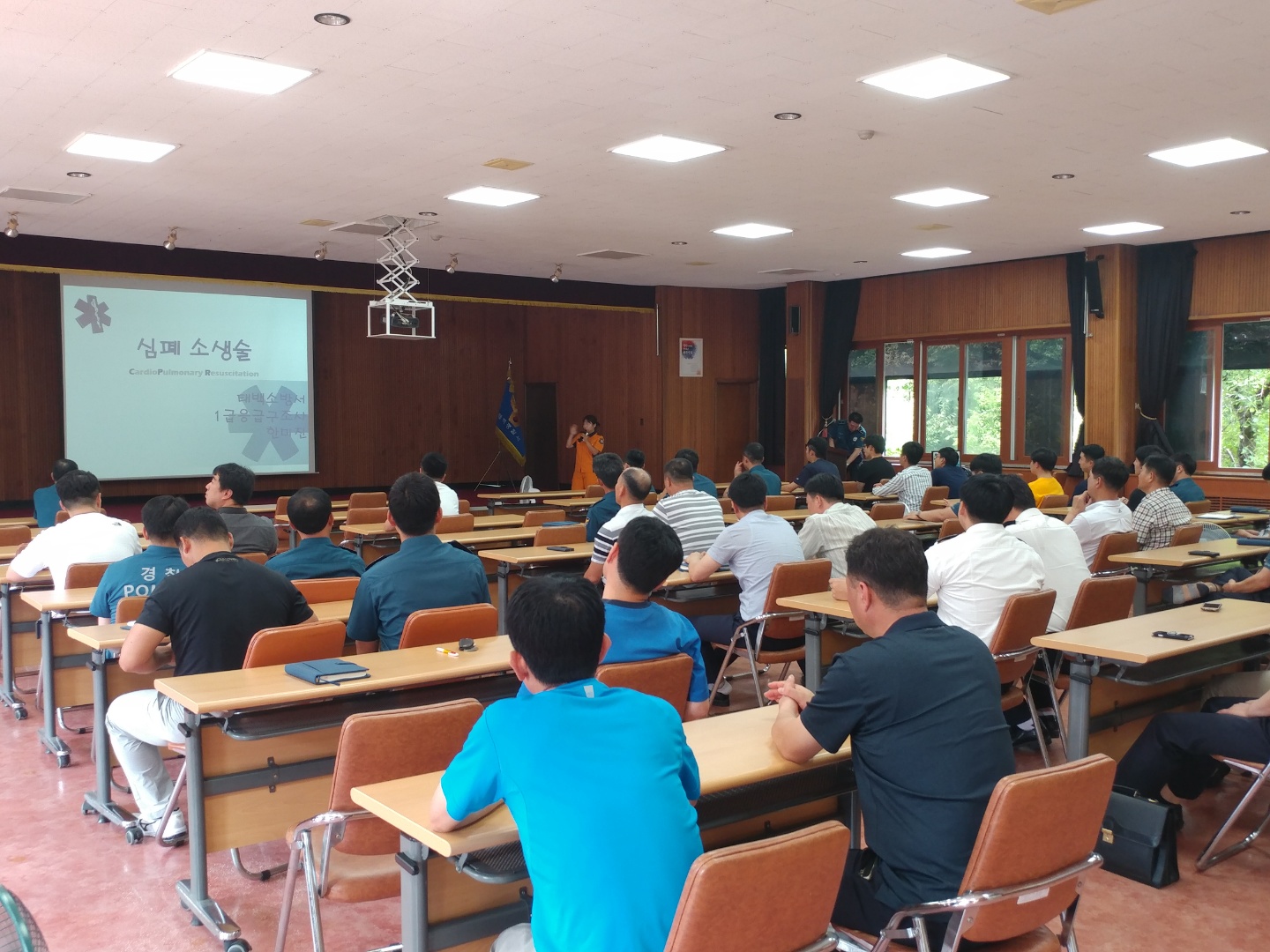 태백소방서(서장 박흥목)는 9일 태백경찰서 회의실에서 경찰공무원 80여명을 대상으로 응급처치 능력 향상을 위한 소방안전교육을 실시했다.
