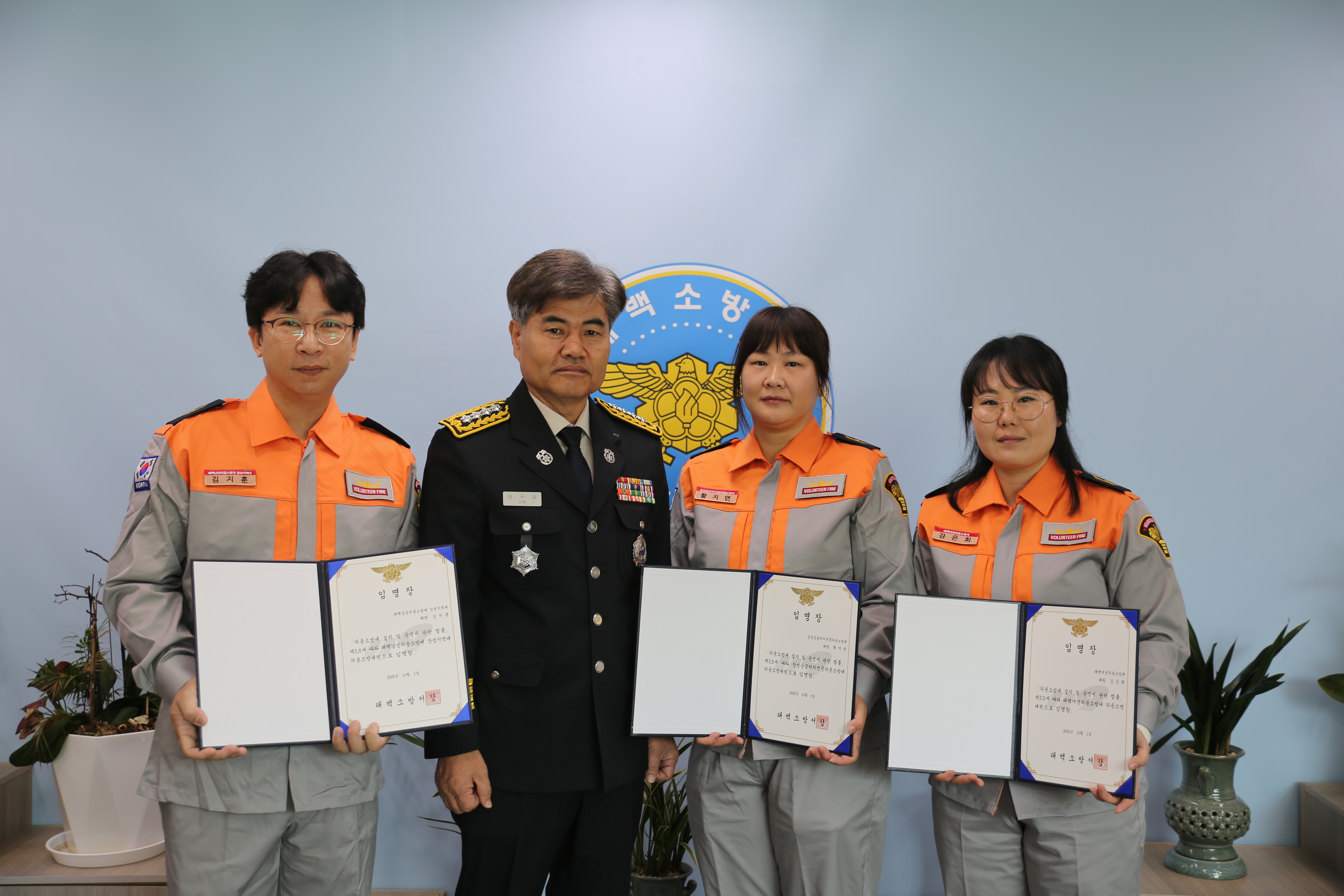 태백소방서(서장 심규삼)는 1일 오전 9시 30분 신규 의용소방대원에게 임명장 수여식을 개최했다
