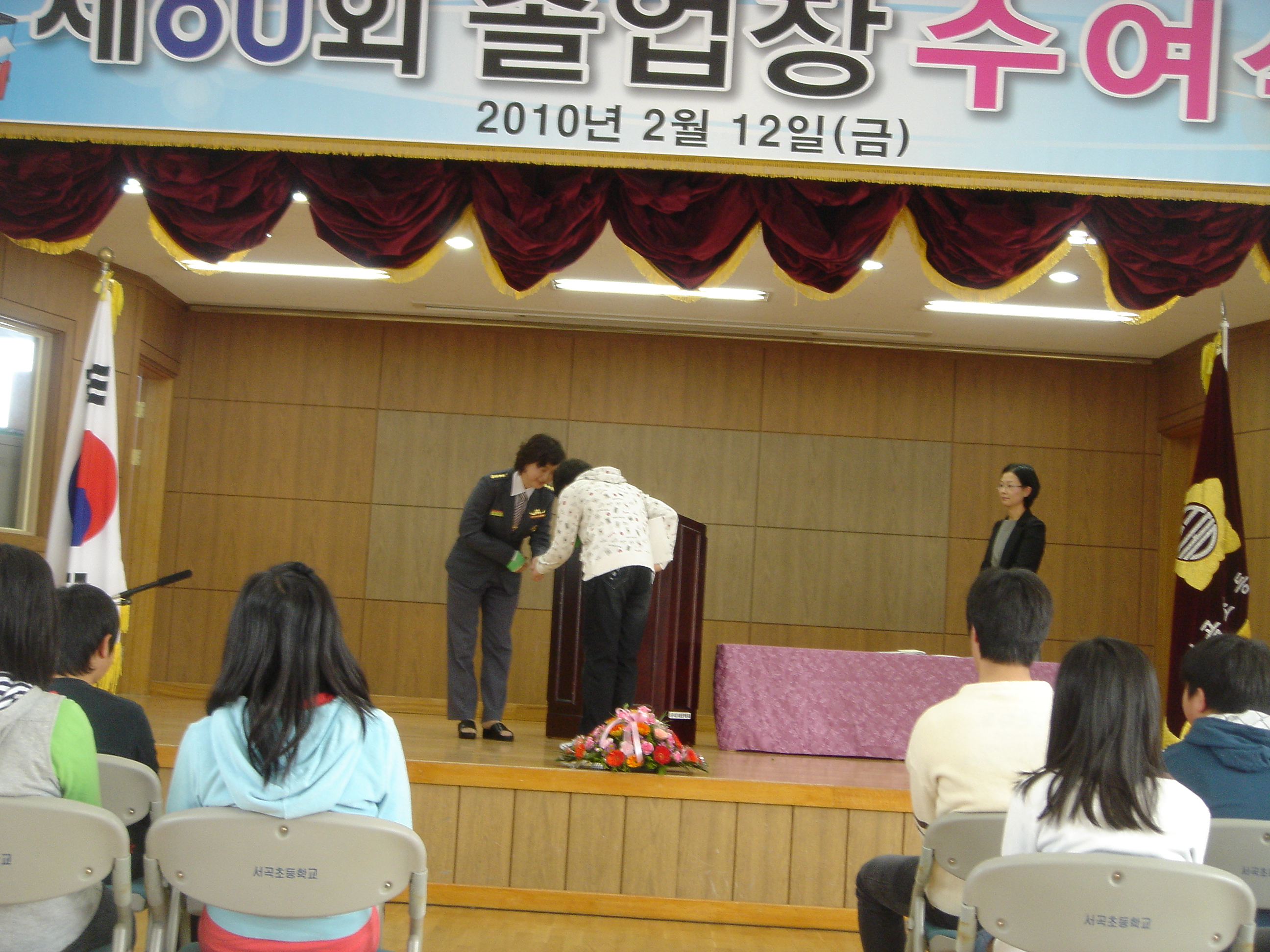 원주소방서(서장 조근희) 소속 판부의용소방대 및 판부여성의용소방대는 2010년 2월 12일(금) 관내 서곡초등학교 졸업식에 참석하여 졸업생에게 장학금을 전달함과 더불어 학생들의 졸업을 축하하는 시간을 가졌습니다.