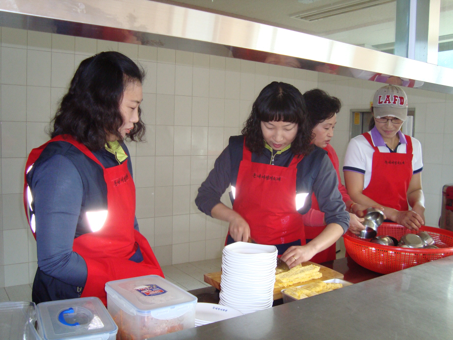 4월 9일 둔내여성대(대장 홍말금)에서는 횡성노인복지센터에서 독거노인들을 대상으로 행복충전발전소를 운영하는데 총무부(부장 고복란) 대원 6명이 참여하여 어르신들의 점심식사를 준비해 대접하였습니다.(설거지는 덤으로...ㅋㅋ)