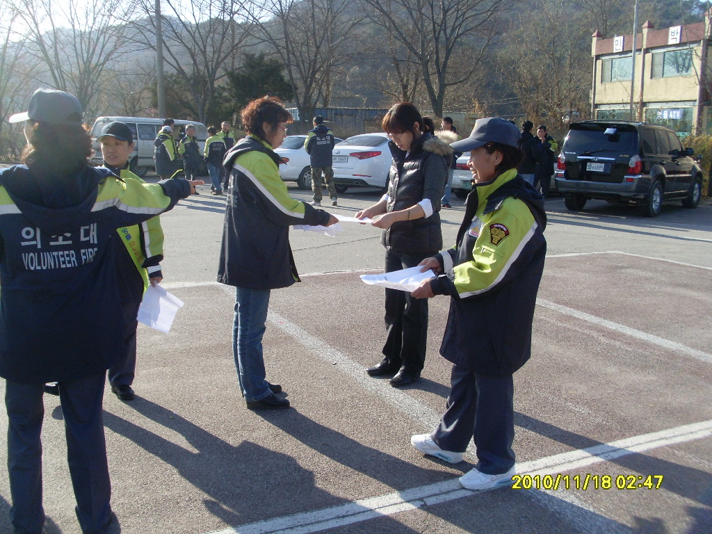 지정여의소대(김명옥대장)는 지난11월25일에 간현관광지에서 남대와 함께 화재 와의 전쟁 홍보지를 나누워주며 캠페인을 하였습니다. 대원님들 수고많으셨습니다.