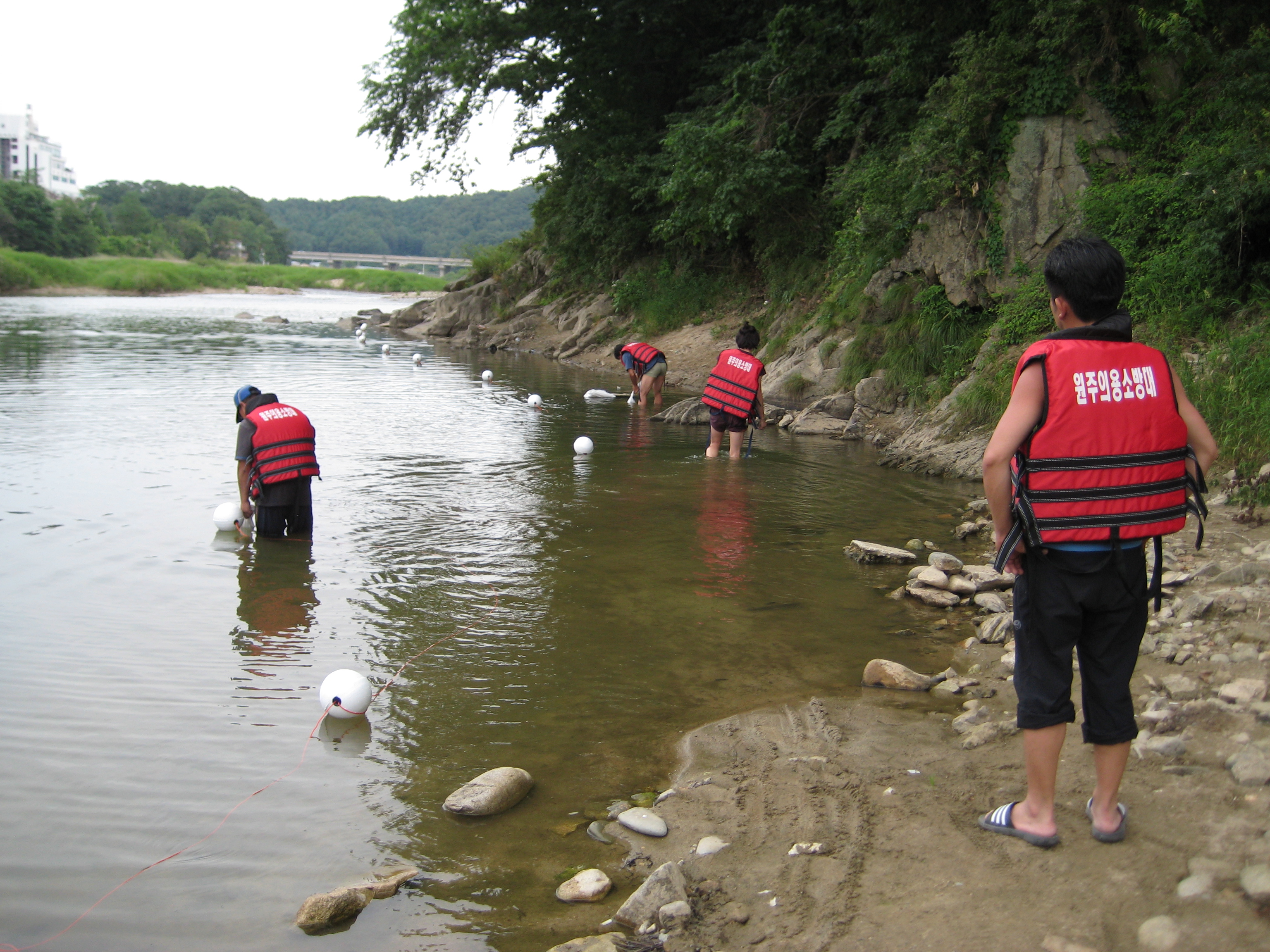 원주의용소방대(대장 조성일)는 6월20-21일 이틀간 대원 40명이 참가하여 섬강가(취병유원지,판대위원지,간현관광지,칠봉유원지,옥산유원지)에 수영금지를 알리는 부표설치를 실시했습니다.