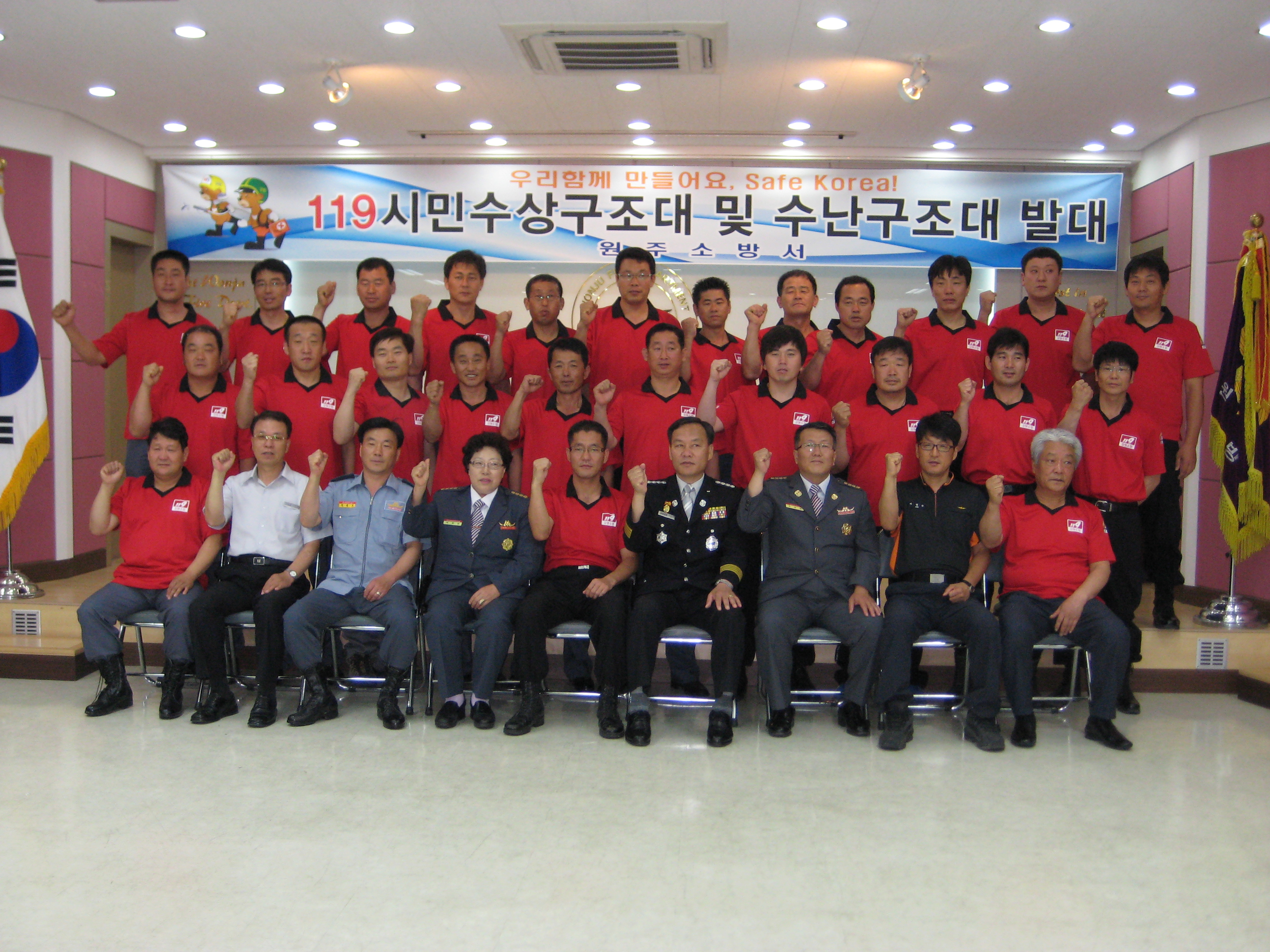 원주소방서(서장. 박창진) 원주의용소방대(대장. 조성일) 대원 40명은 6월30일 원주소방서대회의실에서 문막의용소방대,수난안전협회등 50명이 참가하여 2011년 여름철 119 시민 수상구조대 및 수난구조대를 발대했습니다. 발대식이 끝난후 119구조대원의 심폐소생술 교육과 7월1일부터 근무할 칠봉유원지와 간현관광지를 찾아가 부표설치 안전장비 정검등 을 실시했습니다.