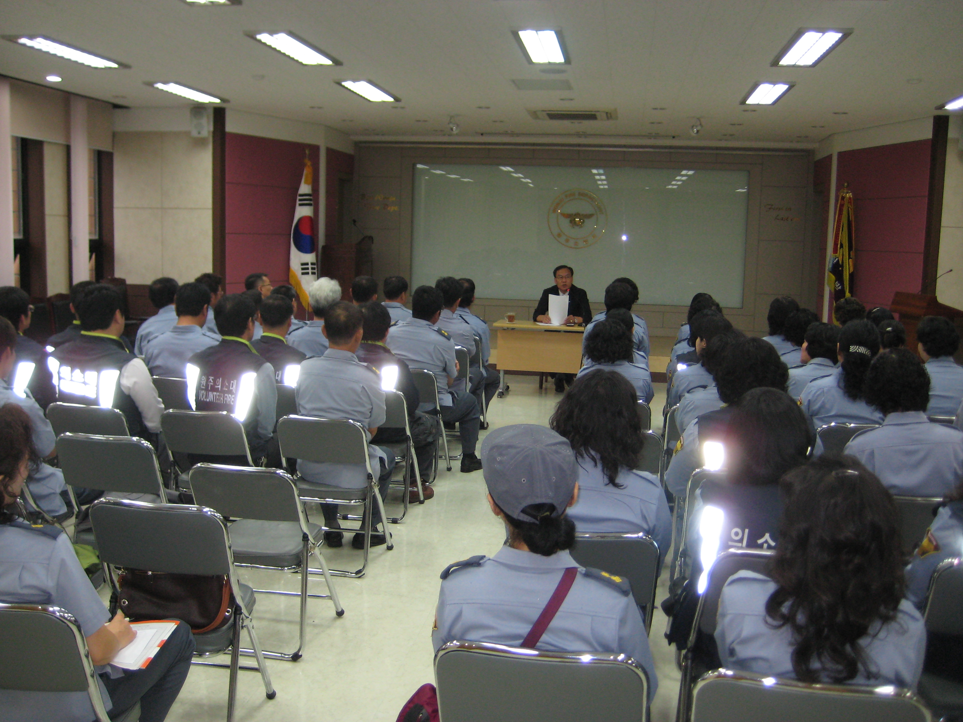 원주의용소방대(대장 조성일),원주여성의용소방대(대장 이현자)는 9월29일 원주소방서 회의실에서 남,여60명이 참가하여 9월 정기교육을 실시했습니다. 박창진서장님의 강의와 외부강사 초청하여 실시했습니다