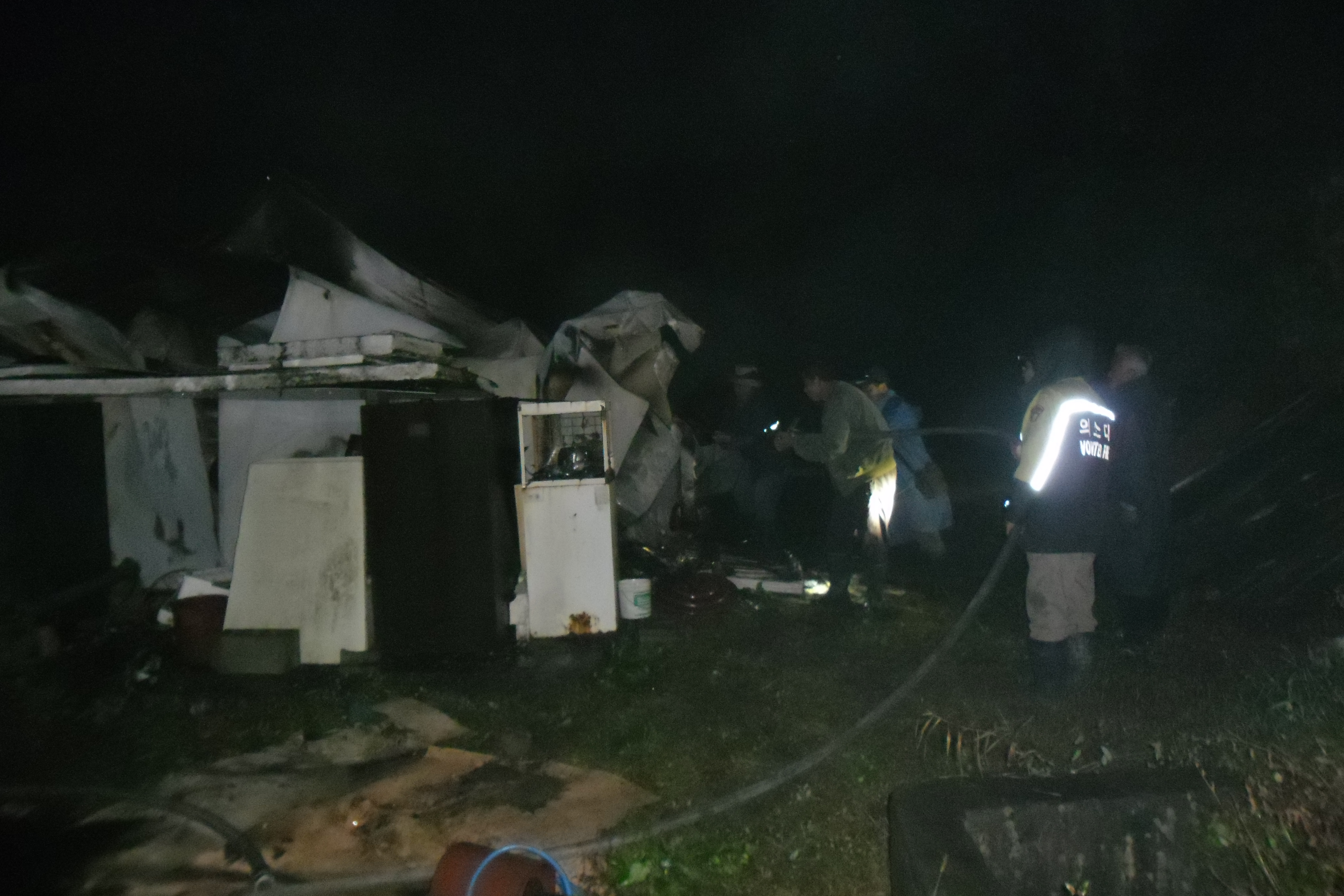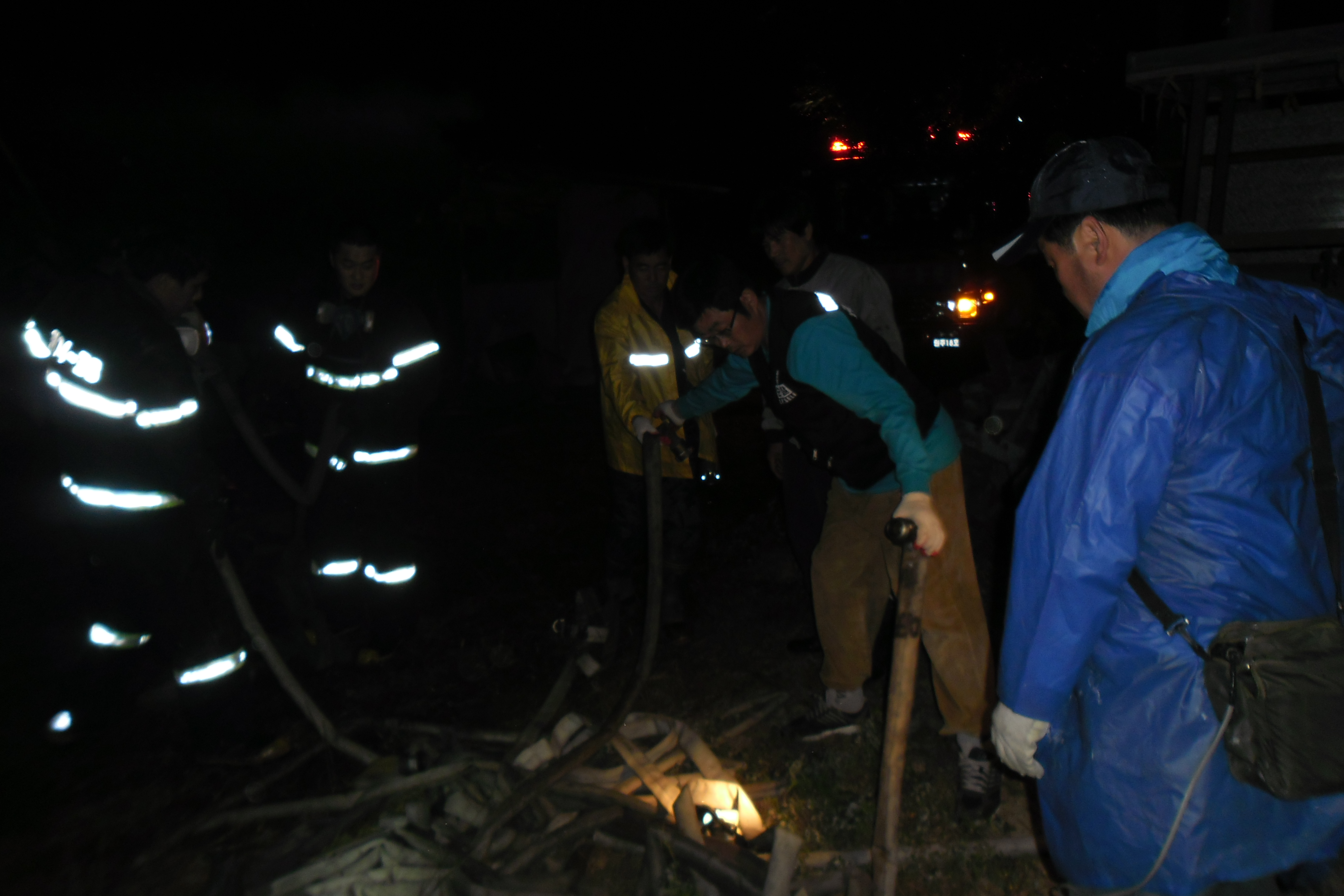 비가 억수같이 ?아 지는데 주택에 불이 났다