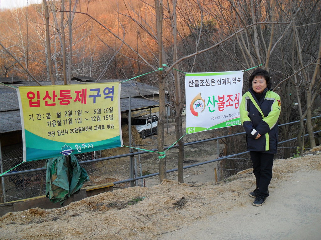 짝을 지어 건등산 주변 명봉산 주변 등 산불예방 캠페인 중입니다^*^