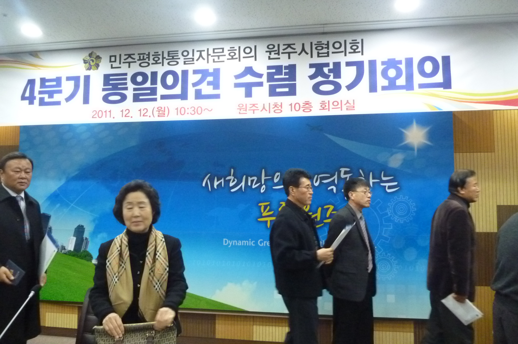 흥업여성대(대장오오석)에서는 12월12일 10시30~12시까지 대장외3명이 원주시청 대회의실에 참여하고 왔습니다.내년도 통일운동 실천방안에 대한 주제로 참석자 전원이 자유토론을 가졌습니다. 상지대 평화안보대학원 김완일교수님의 전문가 강의도 들을수 있었습니다.국민통합을 위해서는 북한실사에 관한 정확하고 올바른 정보제공과 북한 이해를 통해 공감대와 지지를 형성해야 합니다.그러기위해서는 우리사회의 올바른 대북인식 확립과 국민통합을 위새허는 사회통합의 구심체역할을 수행하는 민주평통의 역활과 기능이 중요합니다.