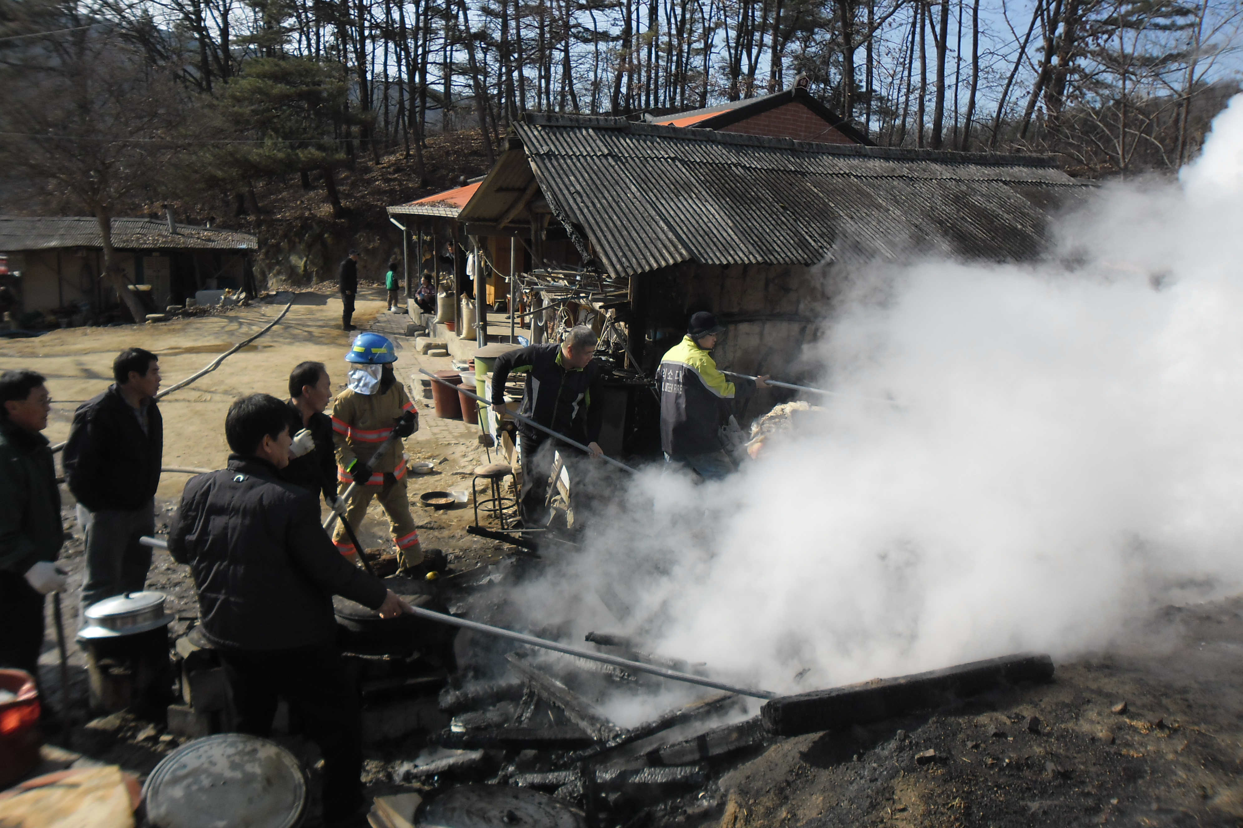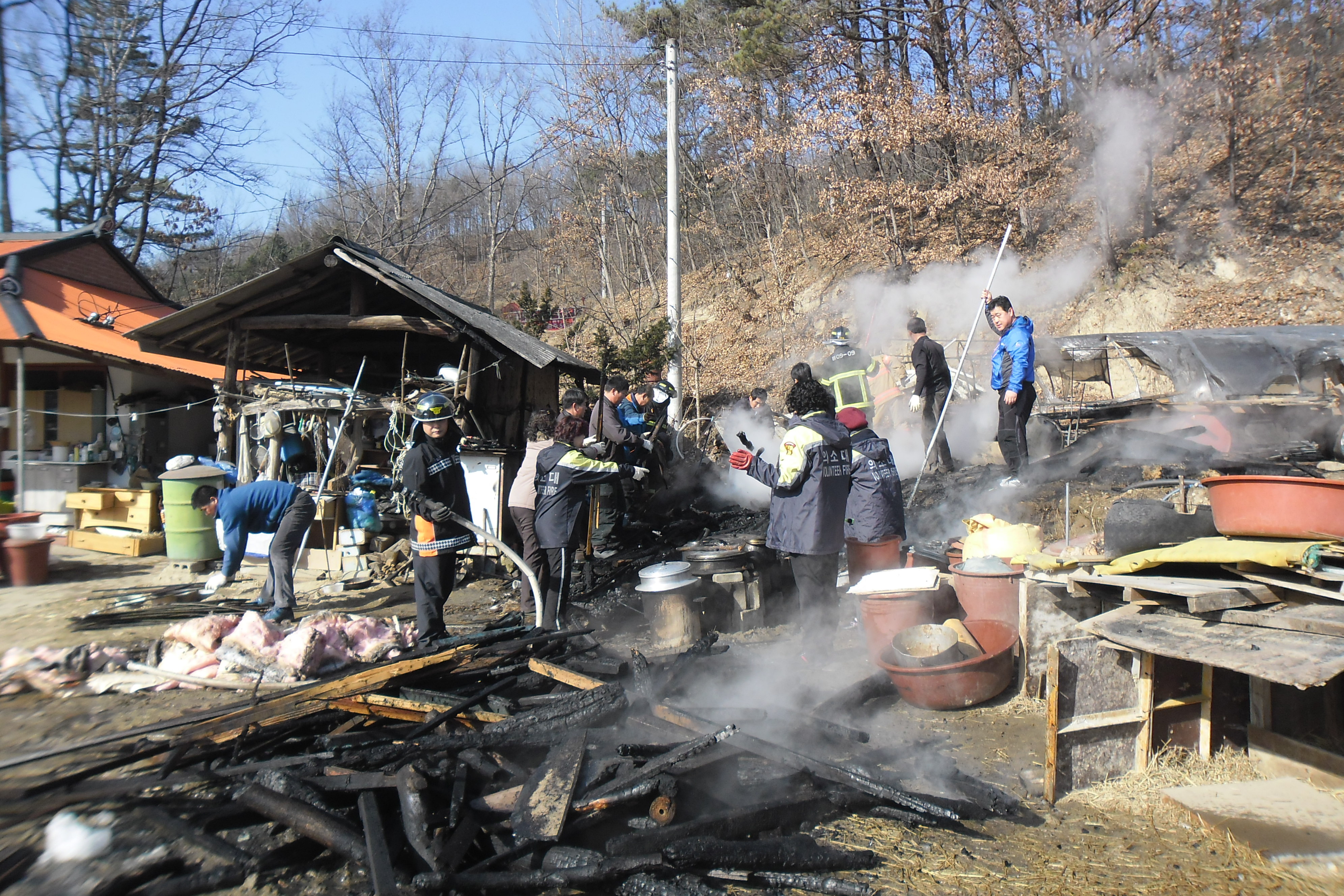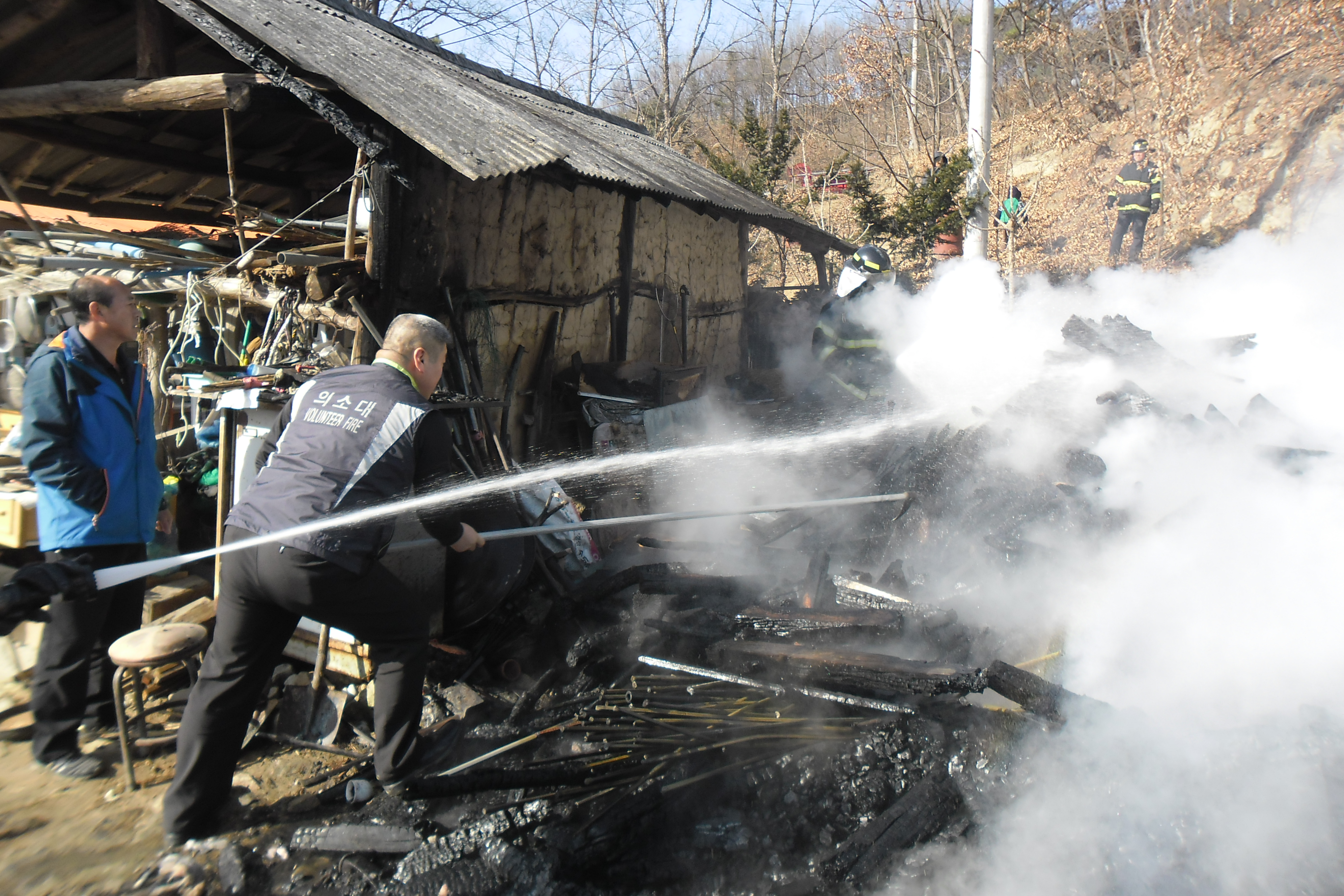 파헤쳐가며 물 뿌려 확실 하게 진압 하였다