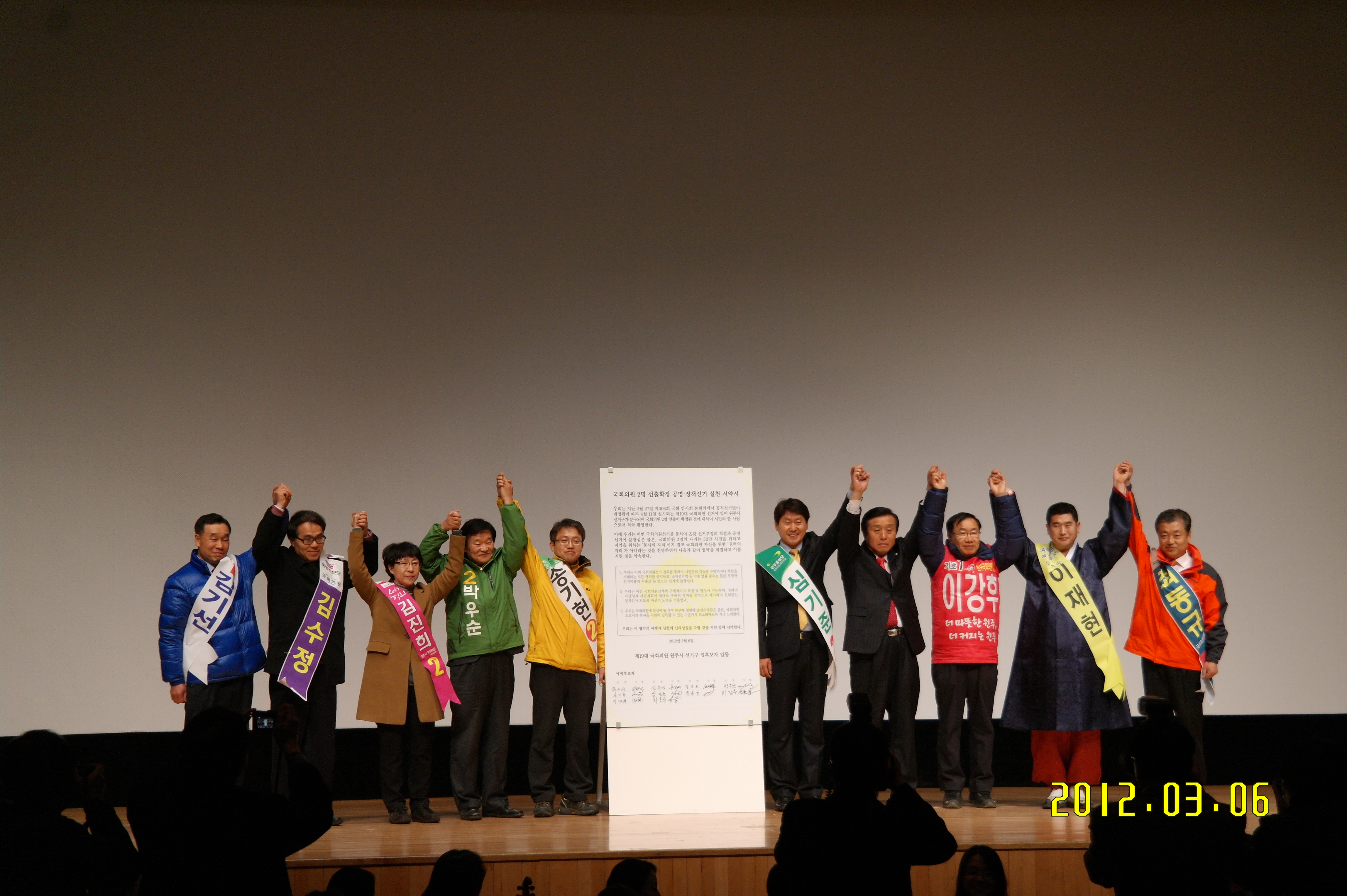 2012년 3월6일 14시 부터 박정자 대장외 4명은 백운아트홀에서 개최한 원주시