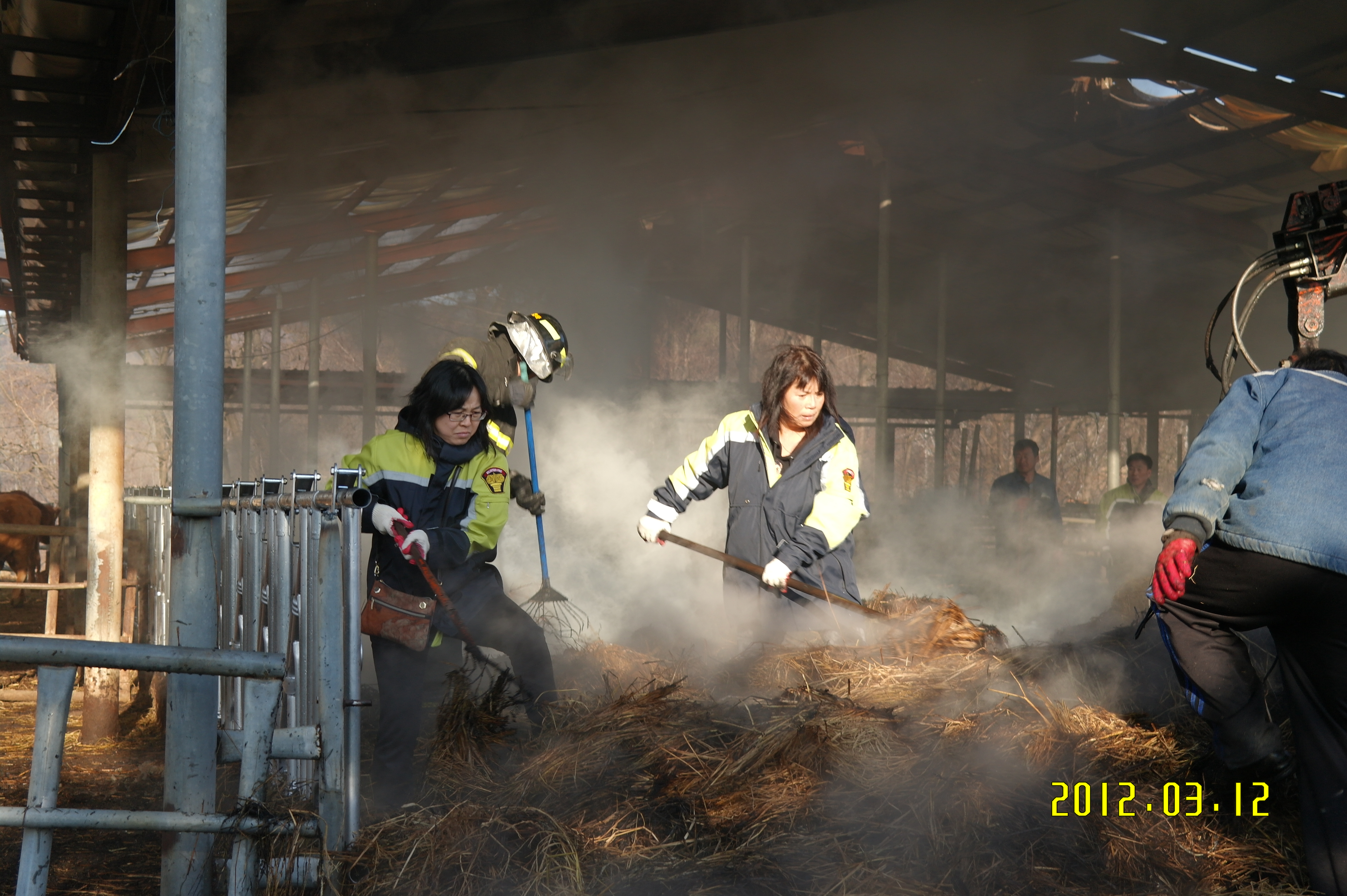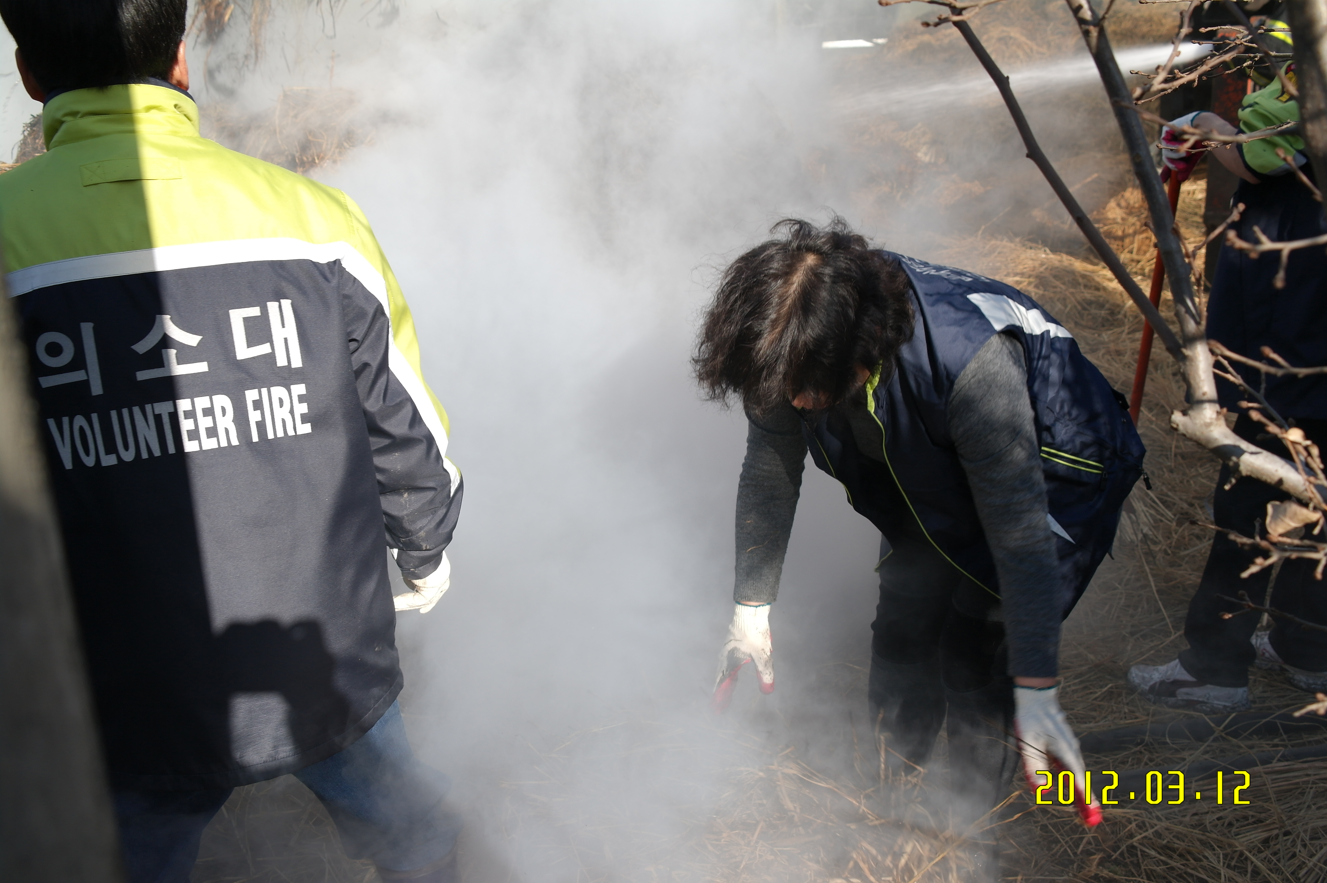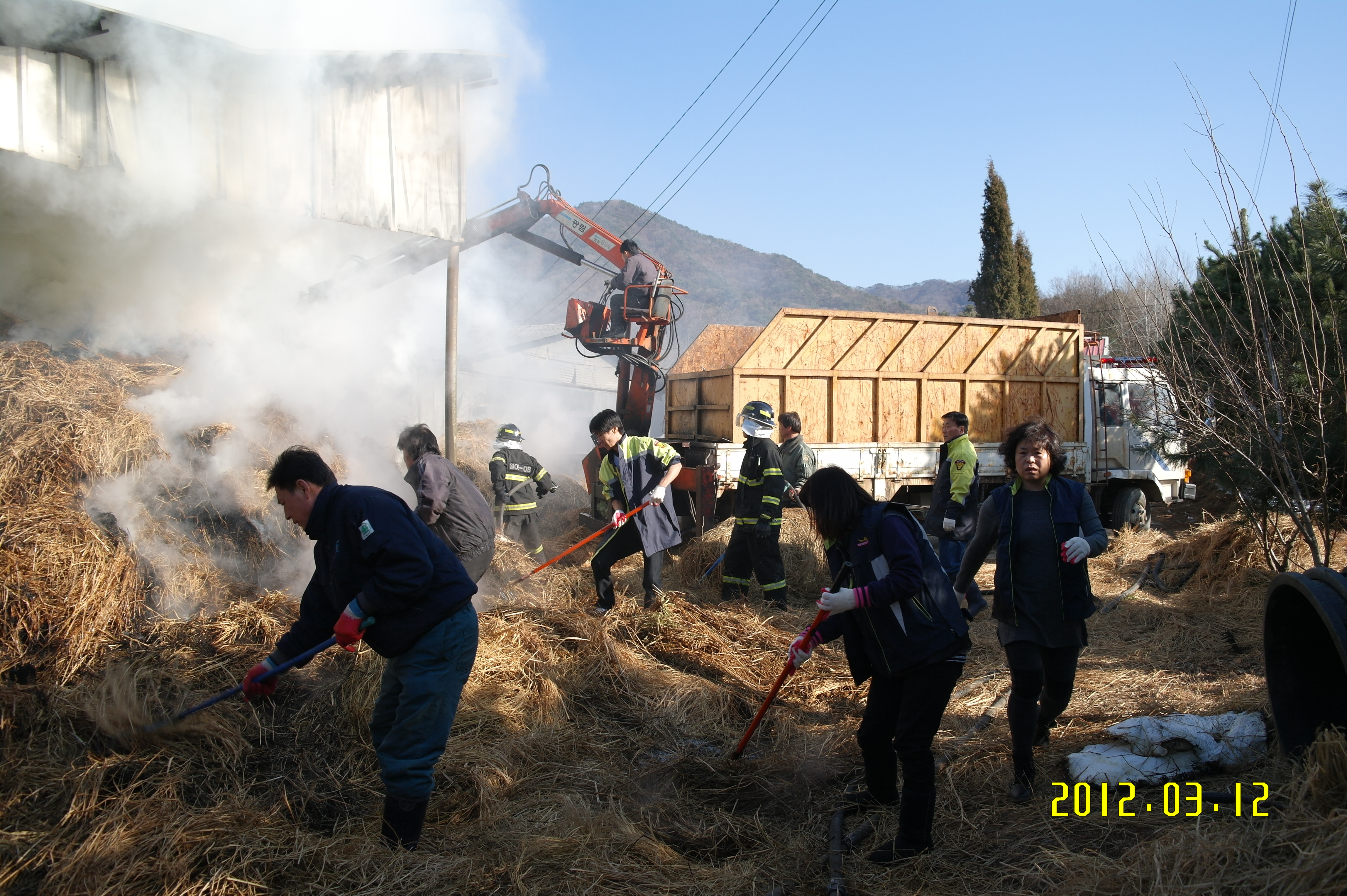 2012년 3월12일 15시34분 문막 여성대(박정자 대장외 14명)는 문막읍 건등리 푸른비목장 볏짚화재가 있었습니다.