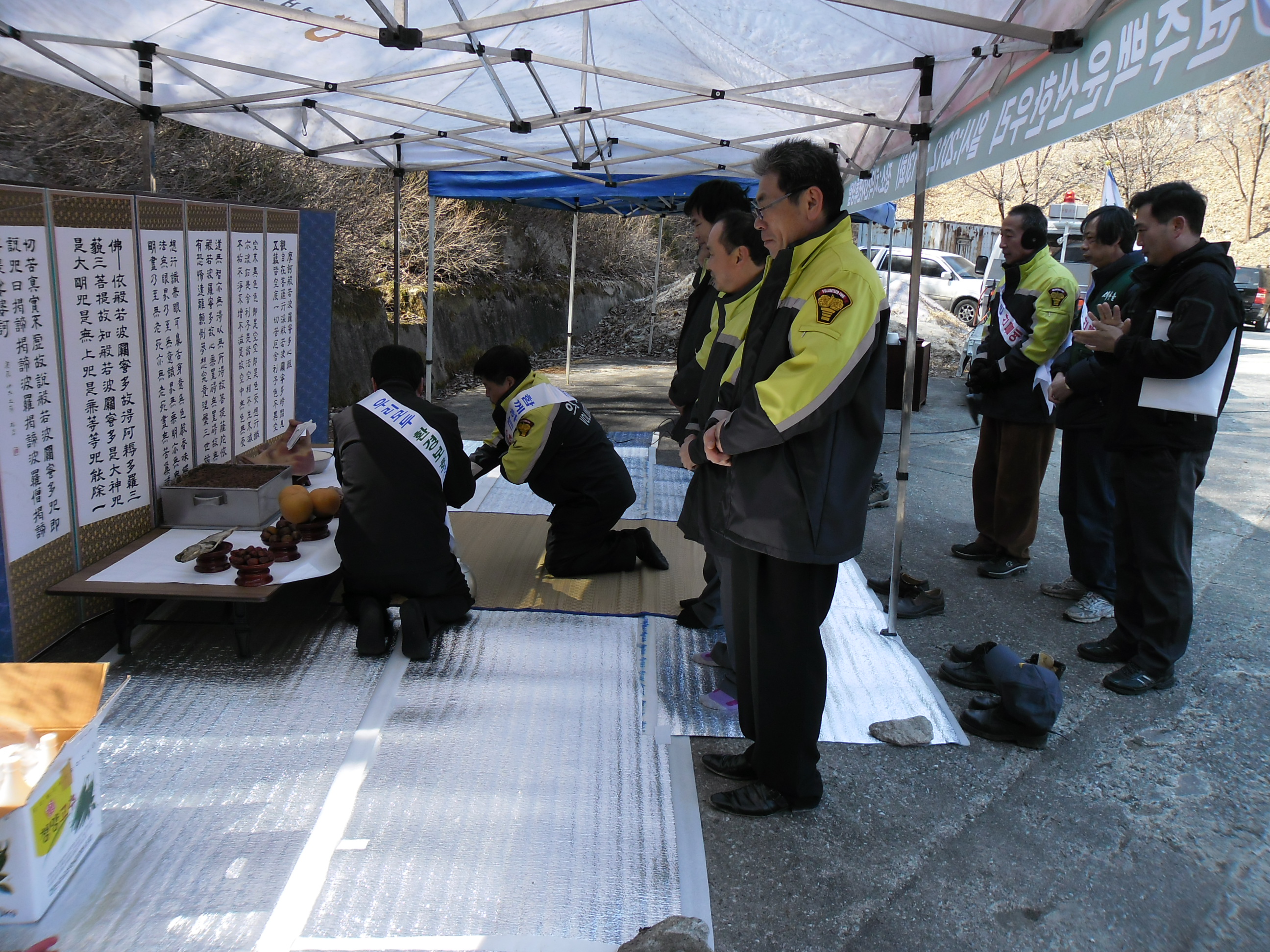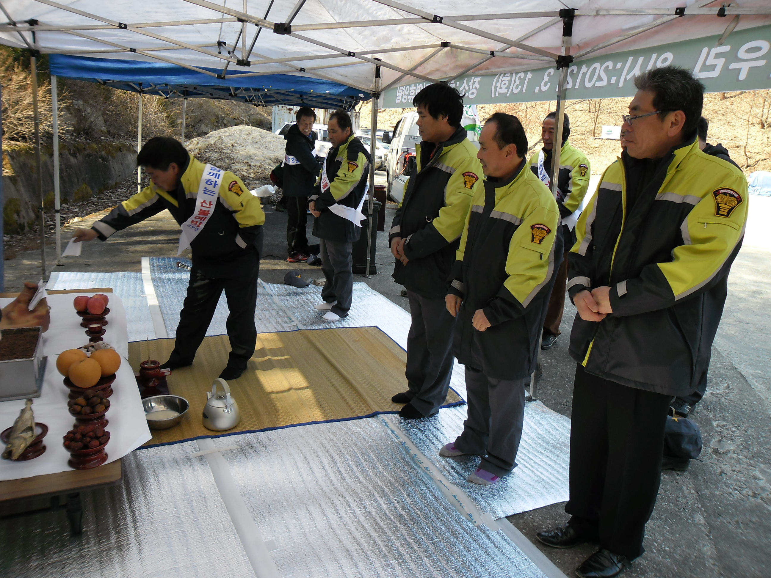 2012년 3월 13일 11시 판부면 관변 단체및 자생단체에서는 판부면민 안녕과 산불 예방을 위한 산신제를 금대리 치악산 휴양림에서 지냄 판부의소대에서도 (박영길 대장)외 10명이 참석하여 산불 예방을 위한 산신제를 지내었습니다