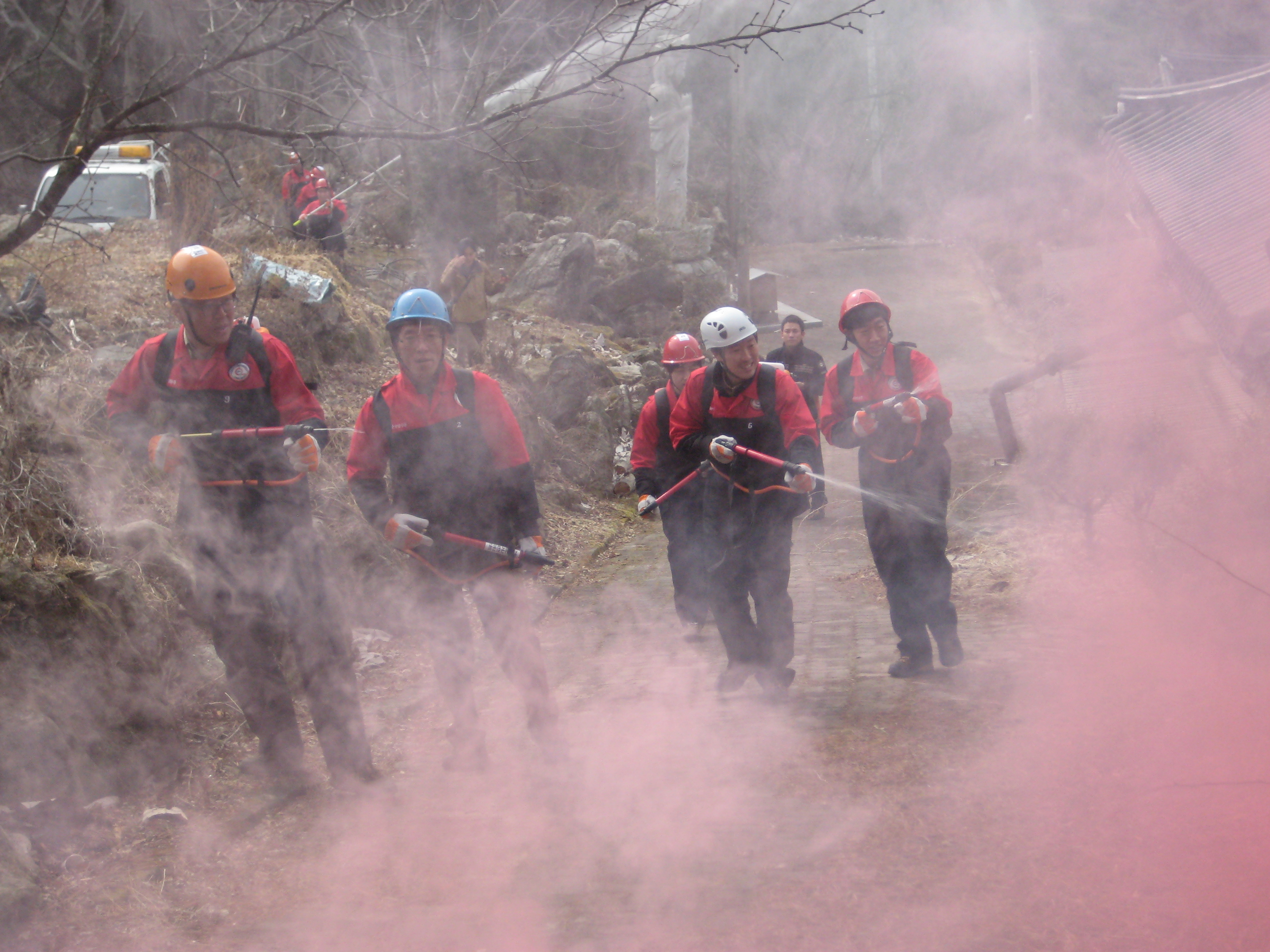 원주의용소방대(대장 조성일)는 3월16일 14:00시 치악산 국향사에서 실시한 산불집압 훈련에 대원 12명이 참가하였습니다. 이날 훈련에는 원주소방서,국립공원관리공단 원주의용소방대등 70여명이 참가하였습니다