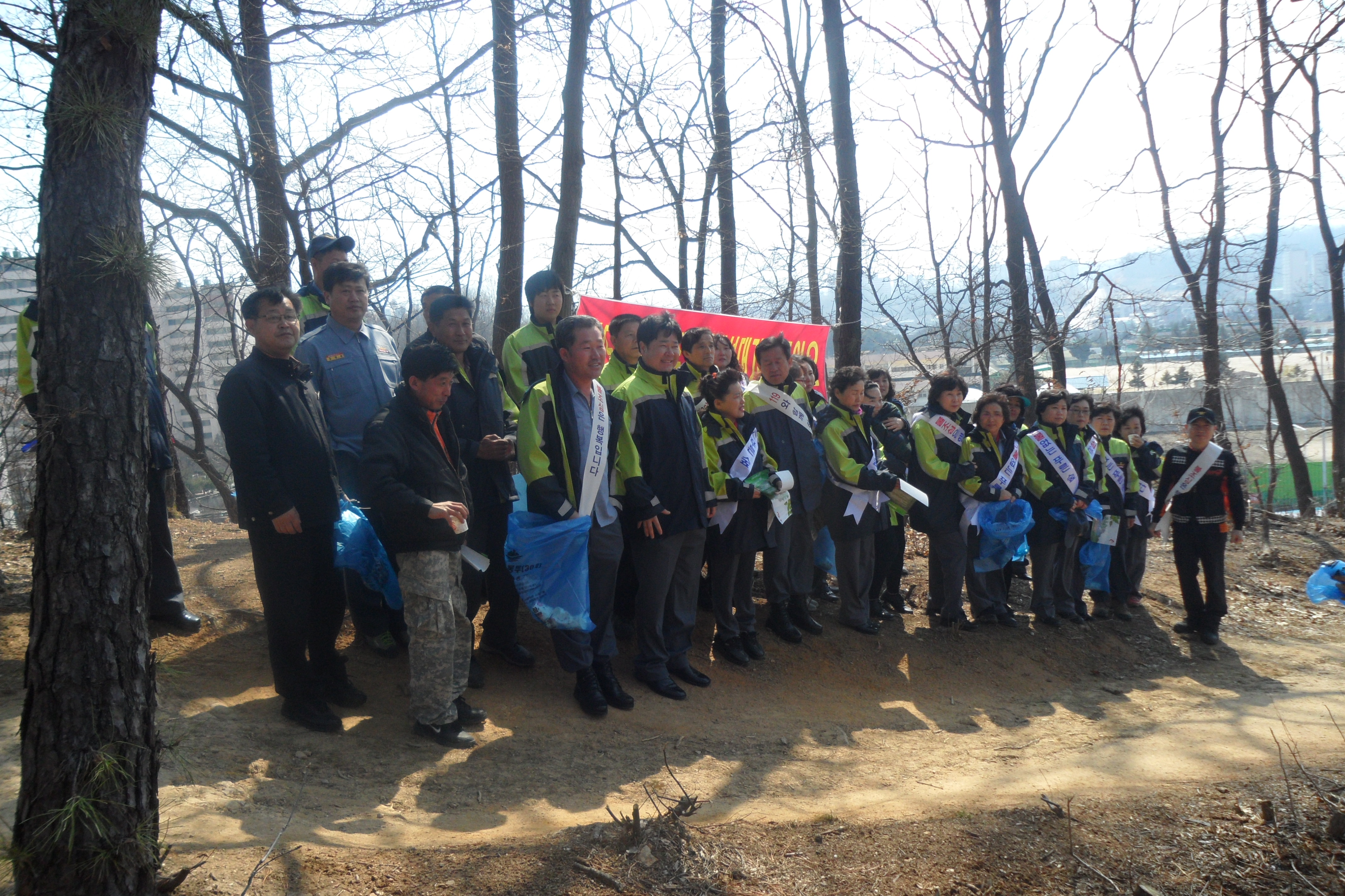 4월5일10;00 고춘열(부대장)외 18명 봉화산에서 산불캠페인및쓰레기줍기