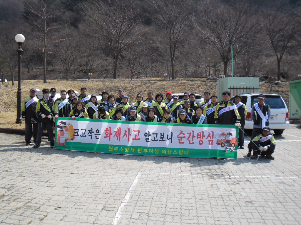판부여성대 (대장 노순일 외22명)는 4월 5일 10시~14시 까지 치악산 매표소 입구에서 산불조심 예방 캠페인을 실시 하였습니다.