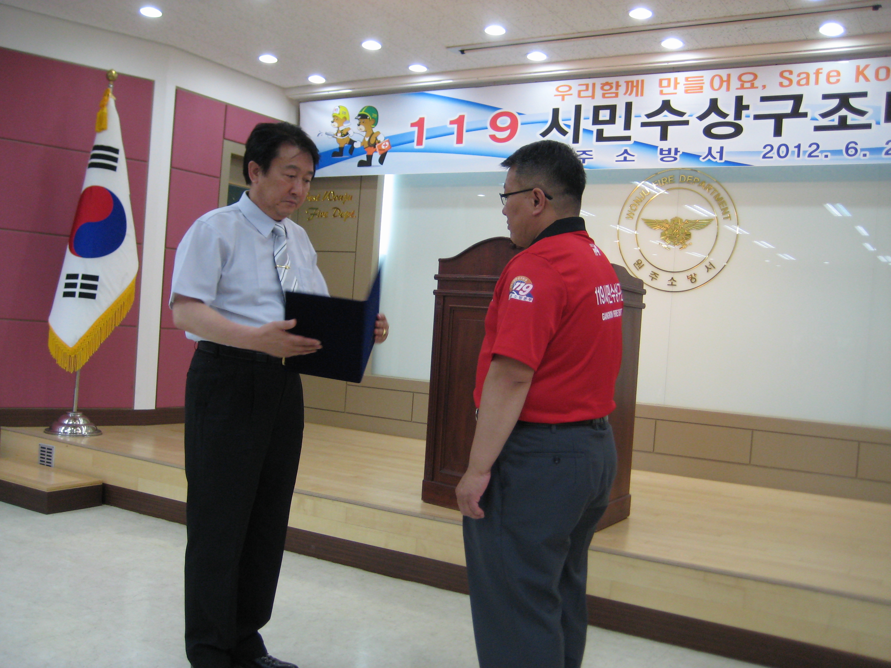 ?원주의용소방대(대장 조성일)는 6월28일 14:00 ????원주소방서에서 2012년 하계 수난구조대 발대식을 서장님과 연합대 남,여대장이 참가하여 실시했습니다. 수난구조대에 위촉된 원주의용소방대 전대원은 7월1일부터 8월26일까지 칠봉유원지에서 수난안전요원으로 매일 10시부터 18시까지 실시합니다