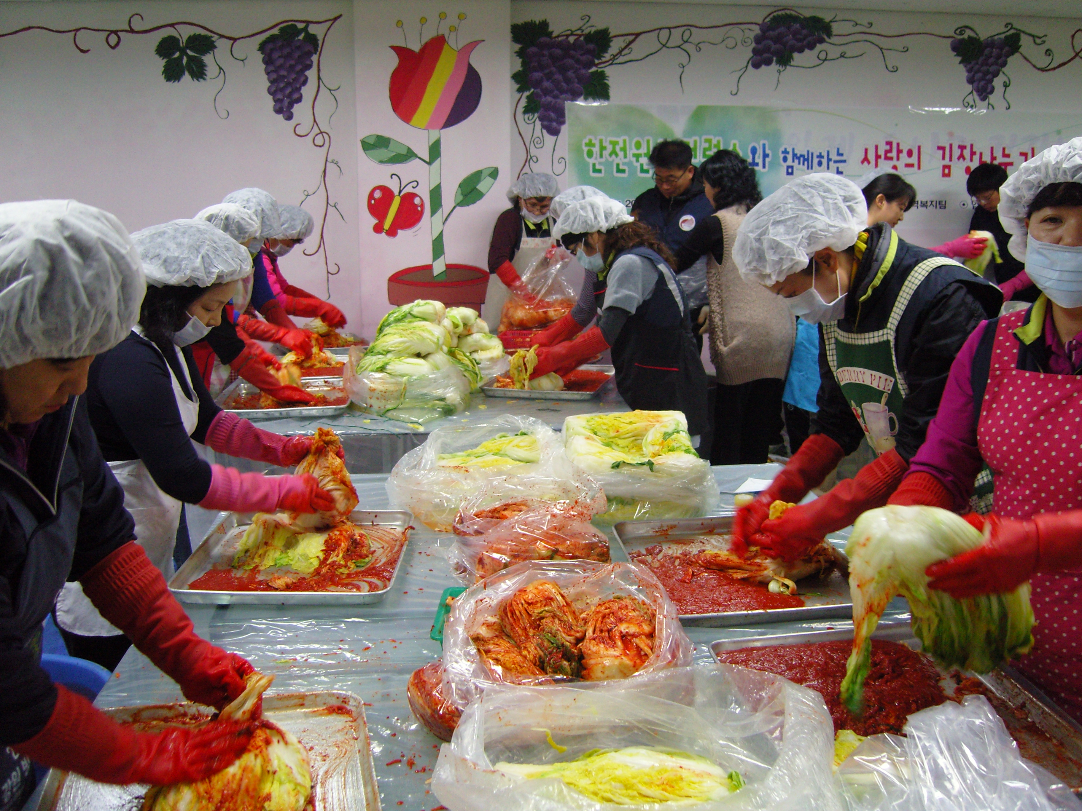 작년에 이어 두 번째로 실시한 장애인복지관 김장담그기행사는 한국전력에서 제공한 배추를 가지고 흥업여성대의 맛깔스런 엄마표 손맛으로 정성을 다해 만들었답니다. 한국전력 아저씨들은 우리 대원들의 능숙한 손놀림 때문에 포장이 많이 밀려 연신 "천천히, 천천히 해주세요~!!"를 외쳤답니다. 덕분에 산더미처럼 쌓여있던 배추 1,700포기는 대원들의 웃음소리와 함께 빠르게 빨간옷으로 갈아입고 새집(Box)으로 들어갔고요. ^^