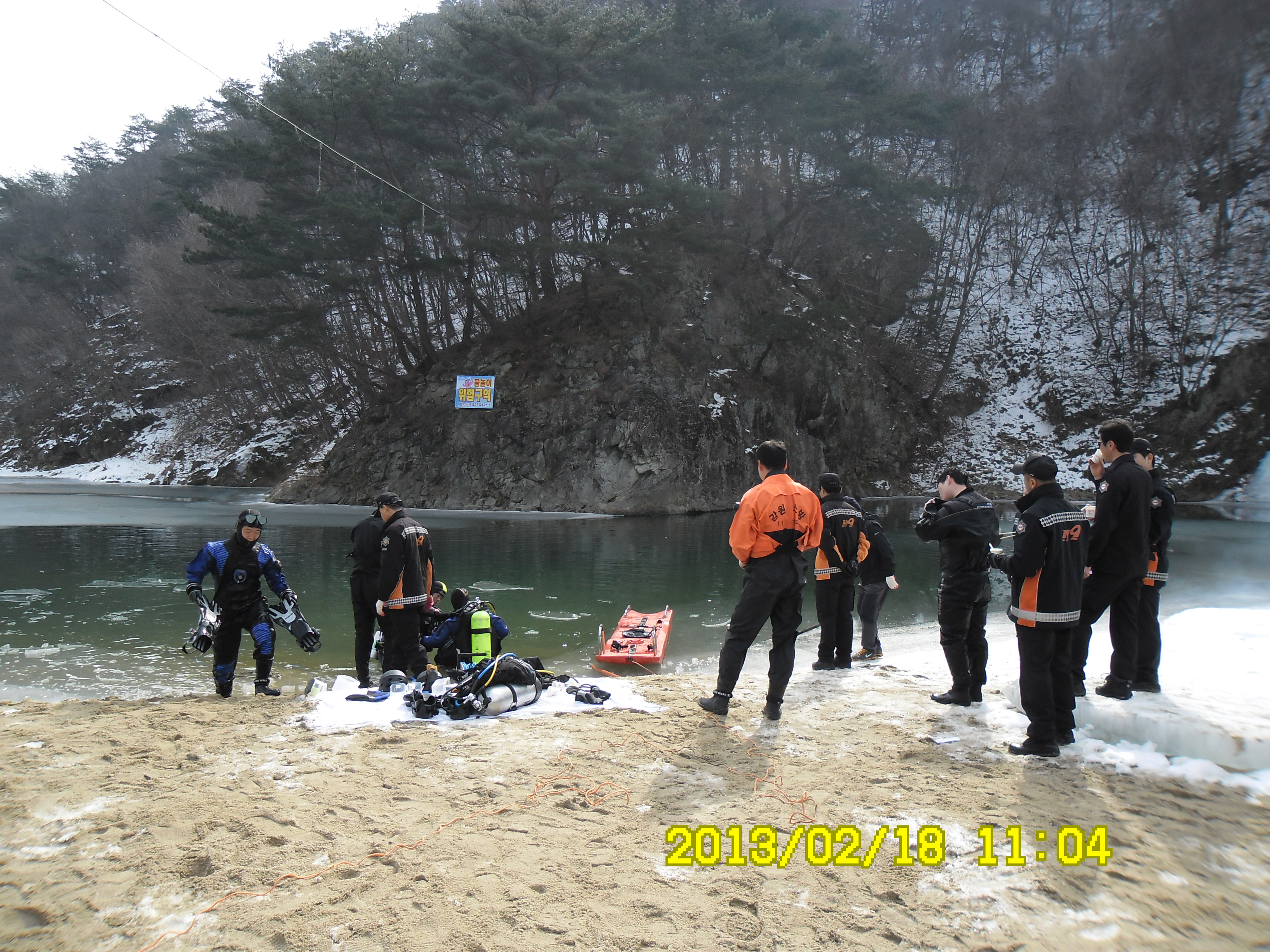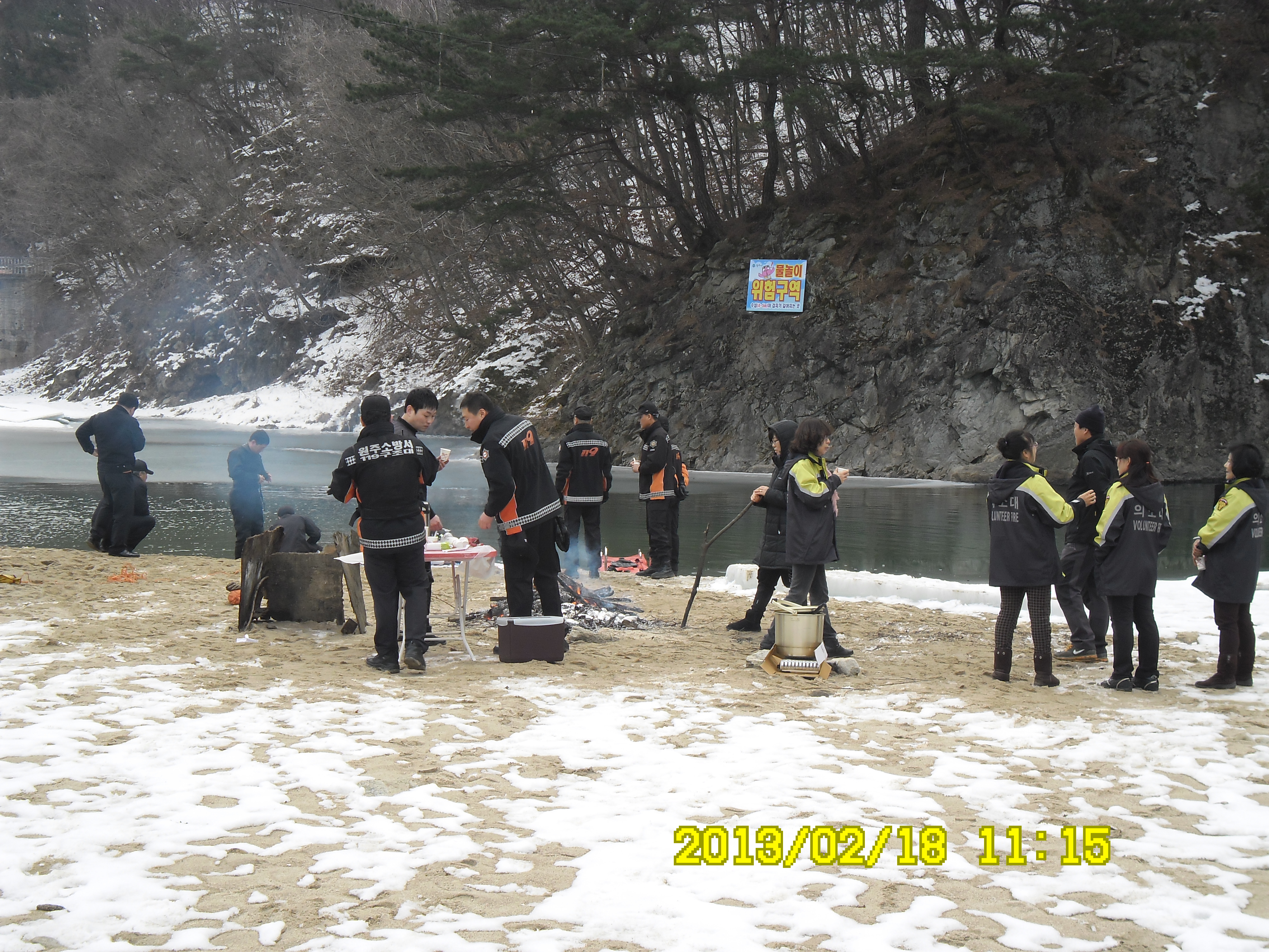 2013년 2월18일 10시에 원주소방서 소방관들이 나와서 해빙기 안전사고대비 인명구조훈련을 간현관광지내 삼산천에서 했습니다. 날씨가 춥지 않아서 강에 얼음이 다 녹아 얼음을 깨고 하는 수고로움을 좀 덜었습니다. 훈련에참가하신 소방관님들 수고 많이 하셨습니다.