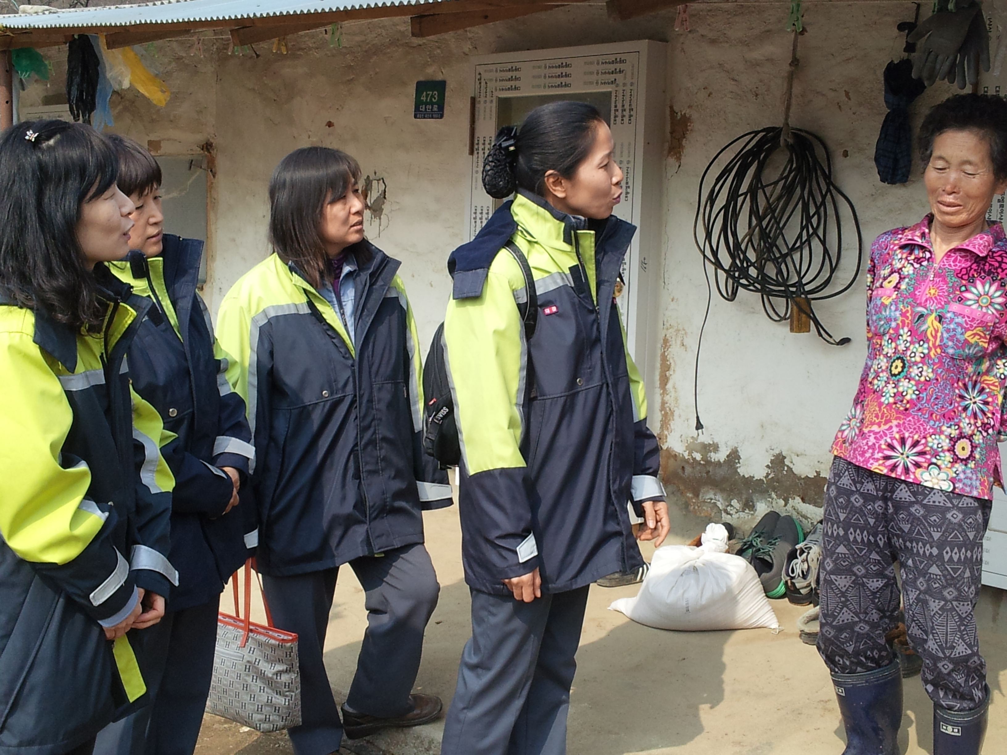 흥업여성대는 정기교육에 대원들의 쌀을 조금씩 모아