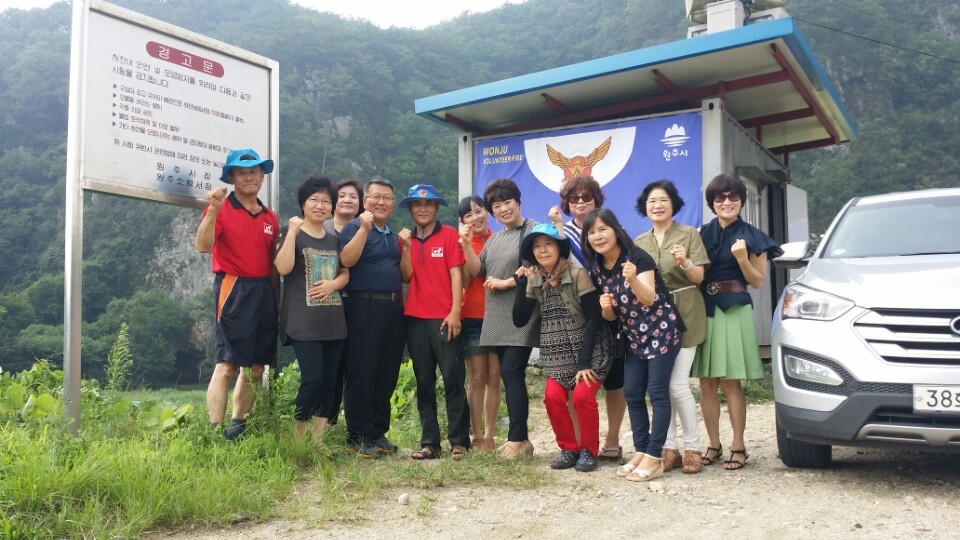 30일 10시에 우산동 진흥원주차장에서 임원진9명이 모여 칠봉유원지로 출발^^~~~ 무더운 날씨에 고생하시는 원주남소대 수난구조대 방문^^~~ 시원한 수박과 금일봉을 준비하여 조성일대장님 총무부장님께 전달 하였습니다^^ 첫번째 방문팀이라고 조성일대장님이 더 반겨주시네요 항상 원주여성의용소방대는 "솔선수범하자" (김영연대장님) 뜻으로 칠봉유원지 쓰레기줍기 캠페인에참여 (담배꽁초외 깨진유리조각...) 칠봉유원지 다녀왔습니다^^~~~ 시원한물에 발도 못 담그고 뭐가 바빠 그냥 나왔네요♥♥♥