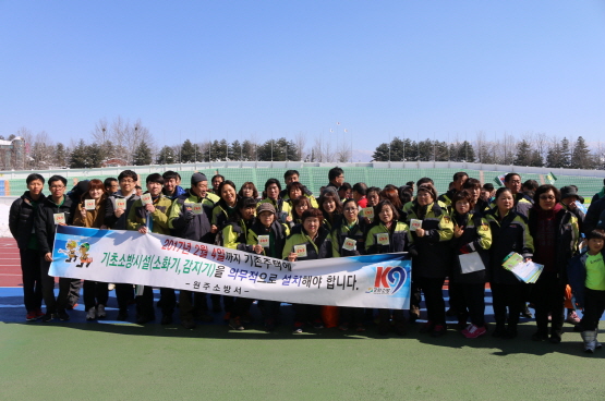 원주소방서(서장 진형민)는 3월 1일 제17회 3.1절기념 건강달리기 행사에서 90여명(소방공무원 30명, 원주시의용소방대연합회 60명)이 참가한 가운데 원주시민을 대상으로 산불예방 예방 홍보 및 주택 기초소방시설 의무설치 홍보, 119신고앱, 비상구폐쇄 등 불법행위 신고포상제 운영, 소방차길터주기 대국민홍보 홍보 캠페인 실시 등 전단지 등을 배부했다.