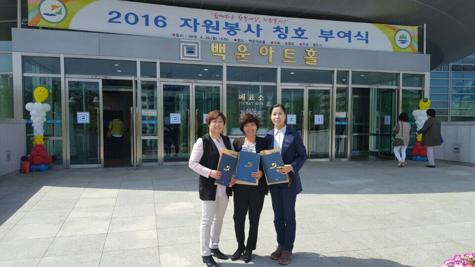 백운아트홀에서 '2016년 자원봉사 칭호 부여식'이 있었습니다..