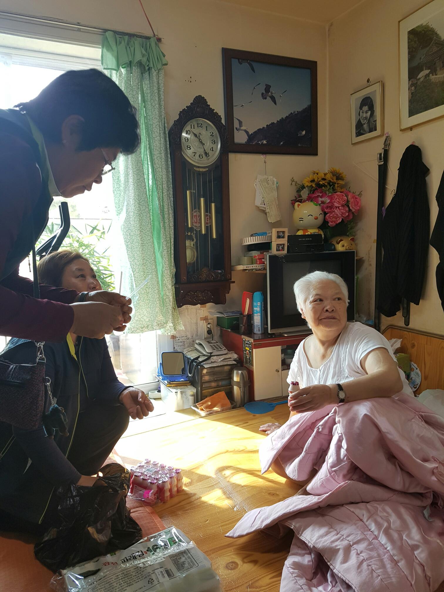 관내 독거노인들에게 반찬과 야쿠르트를 나누어드리고