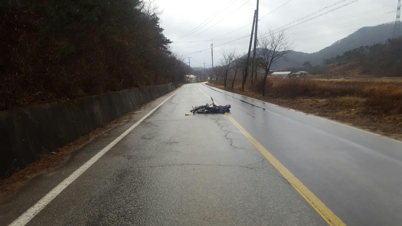 부론에서 원주 대안리방면 국도에서 도로 한가운데 쓰러져 정신잃은 취객 발견 후 차량 바상등켜고 안전거리 확보 후 112,119에 신고. 큰건물없는 시골길에선 112선터에 가까운 근처 전봇대의 상단 7자리 숫자 말해주면 바로 위치확인 가능. 5분만에 경찰,구급대 도착 후 인계하고 귀가