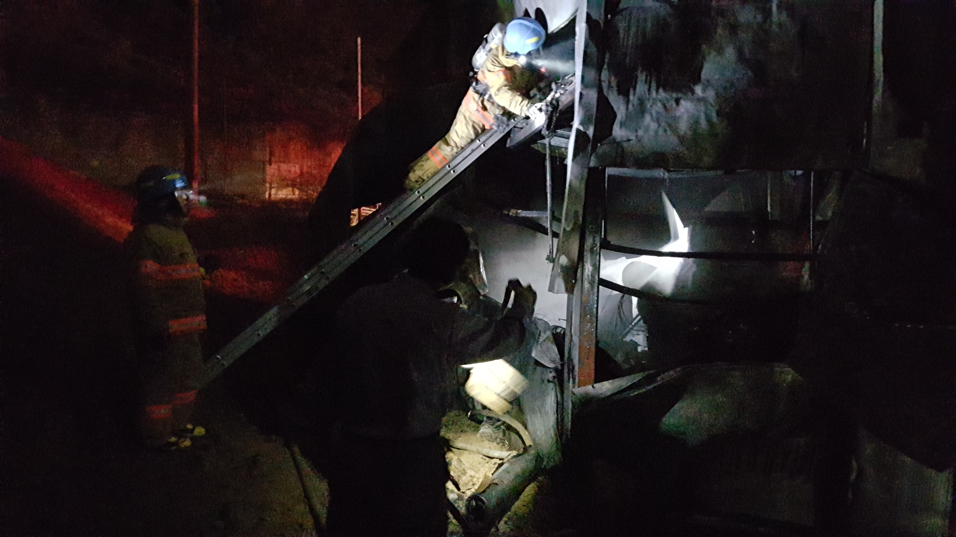 쌀쌀한 날씨에도 불구하고 화재 진압에 힘써 주신 직원분들과