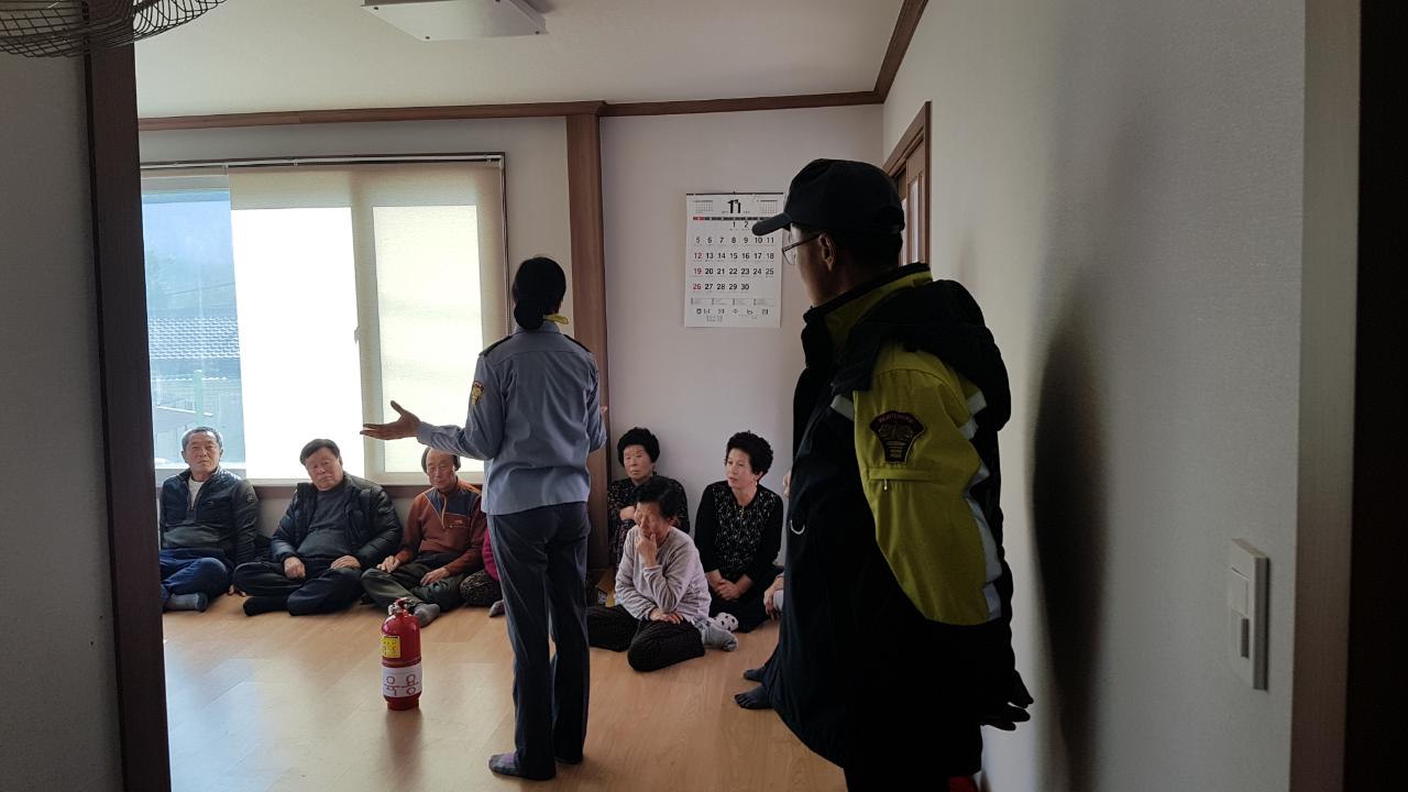 대안리 대수리 노인정 마을 어르신들을 모시고 겨울철 화재예방교육을 실시함