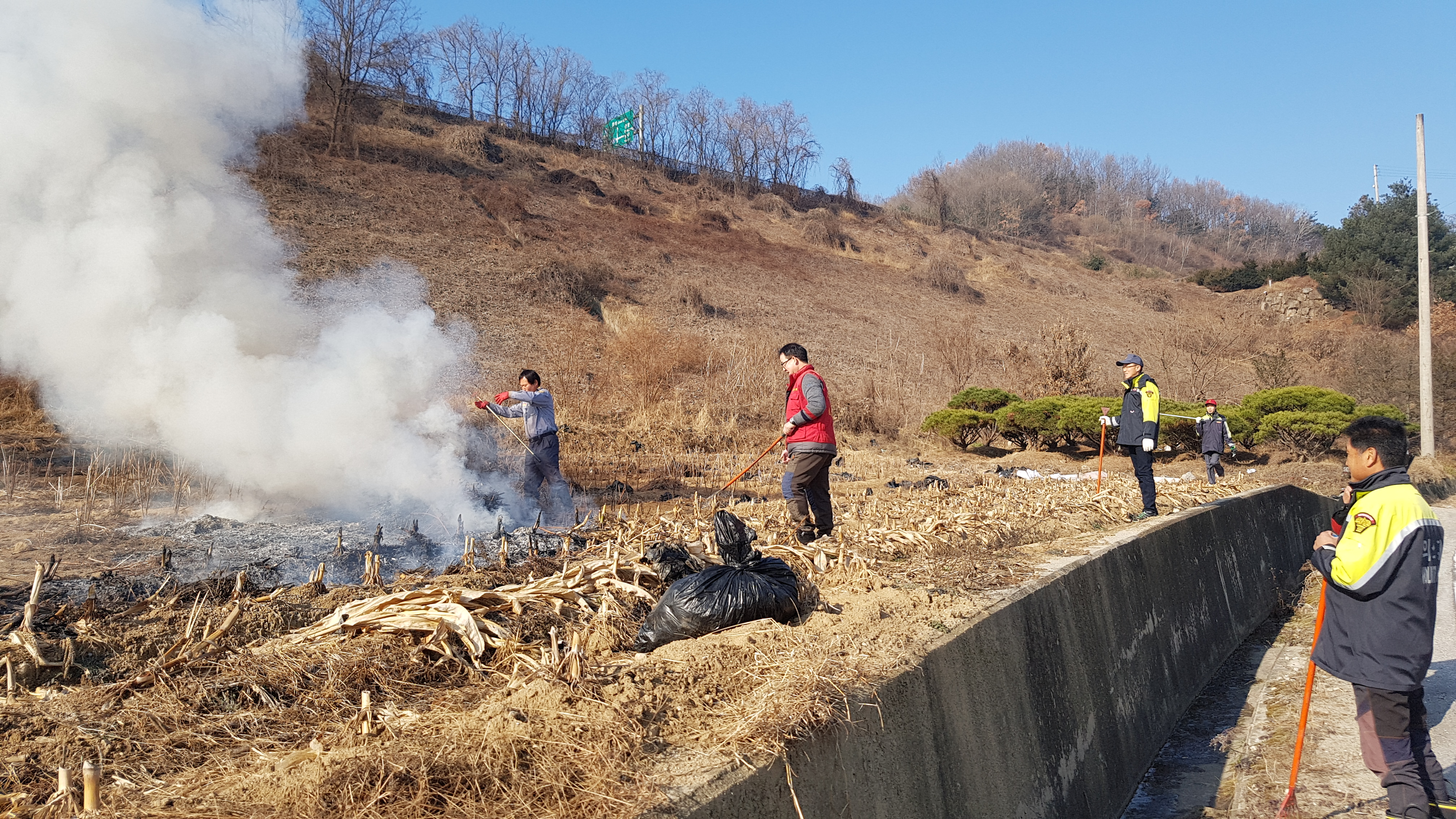 흥업남성의용소방대 " 대안1리2리 마을 공동소각" 예방활동