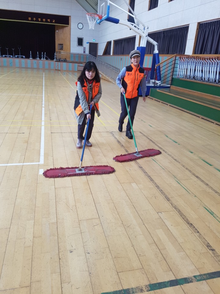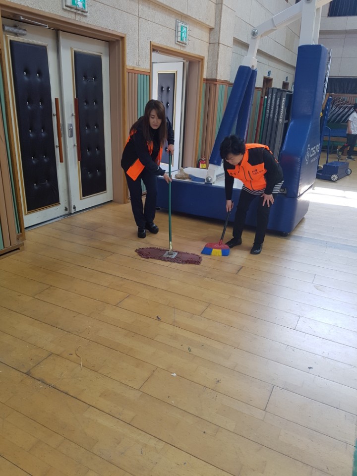 내용: 체육관 실내 바닥청소 및 입구먼지제거 쓰레기분리수거 청원학교 봉사활동 다녀왔습니다.