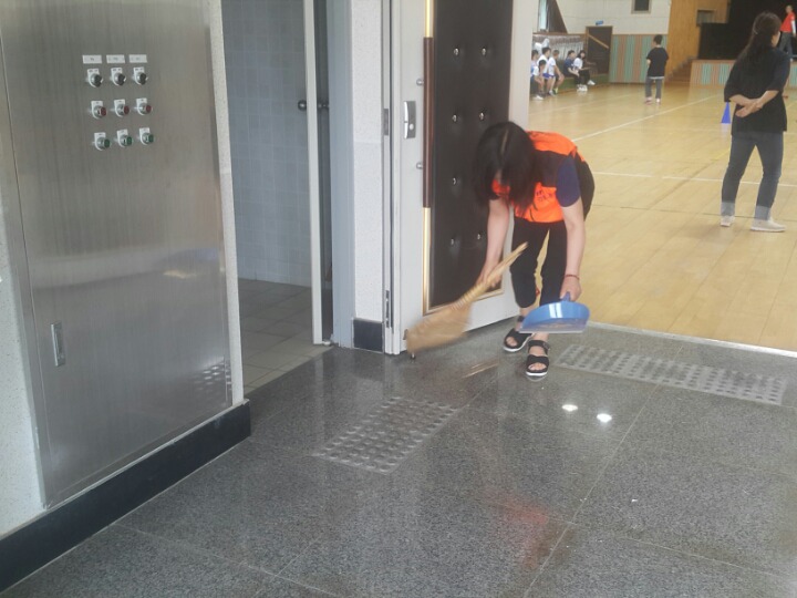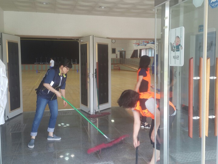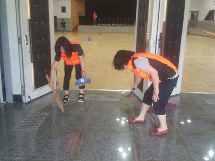 내용: 체육관 실내 바닥청소 및 입구먼지제거 쓰레기분리수거